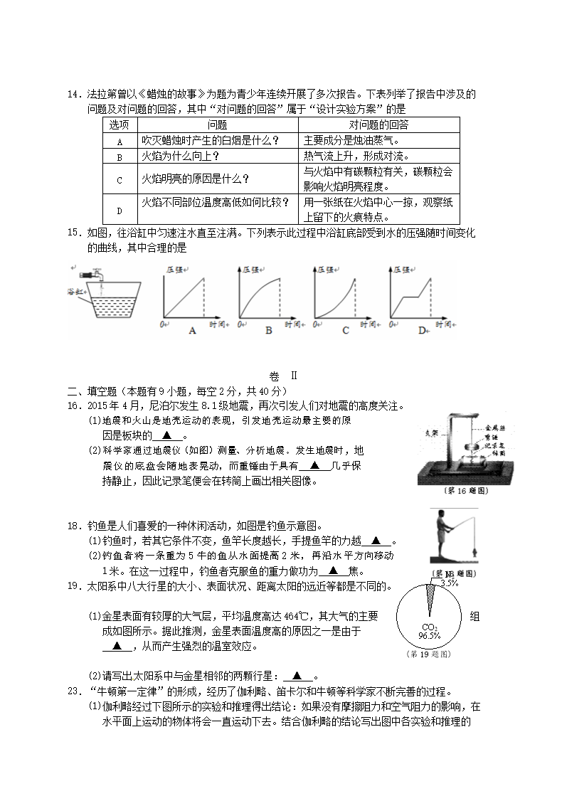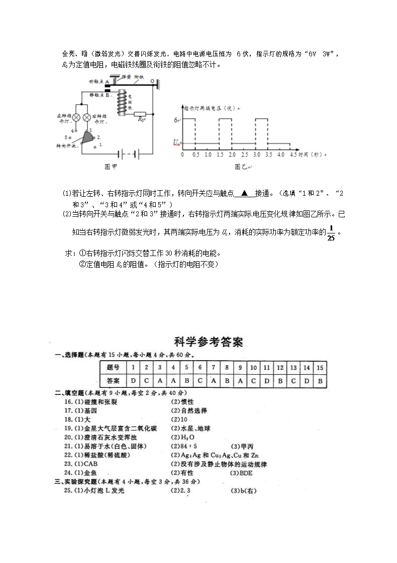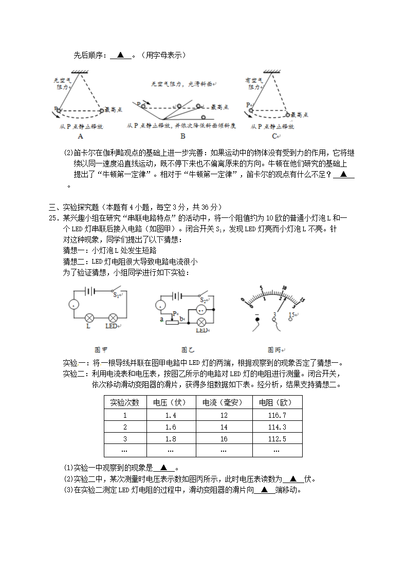 【文档名称】 2015浙江省温州市中考物理真题及答案(Word版).doc