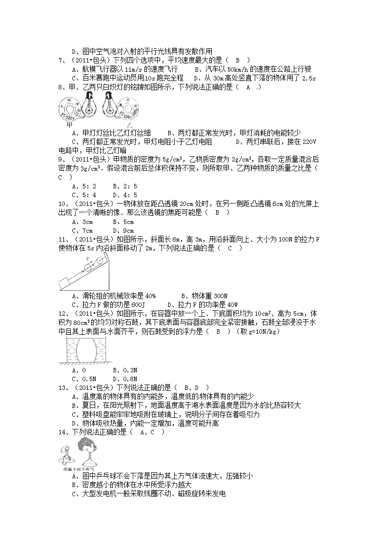 【文档名称】 2011年内蒙古包头市中考物理真题及答案(Word版).doc