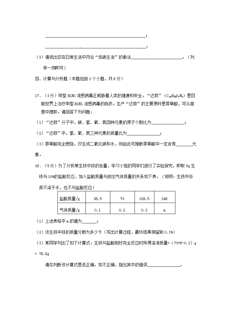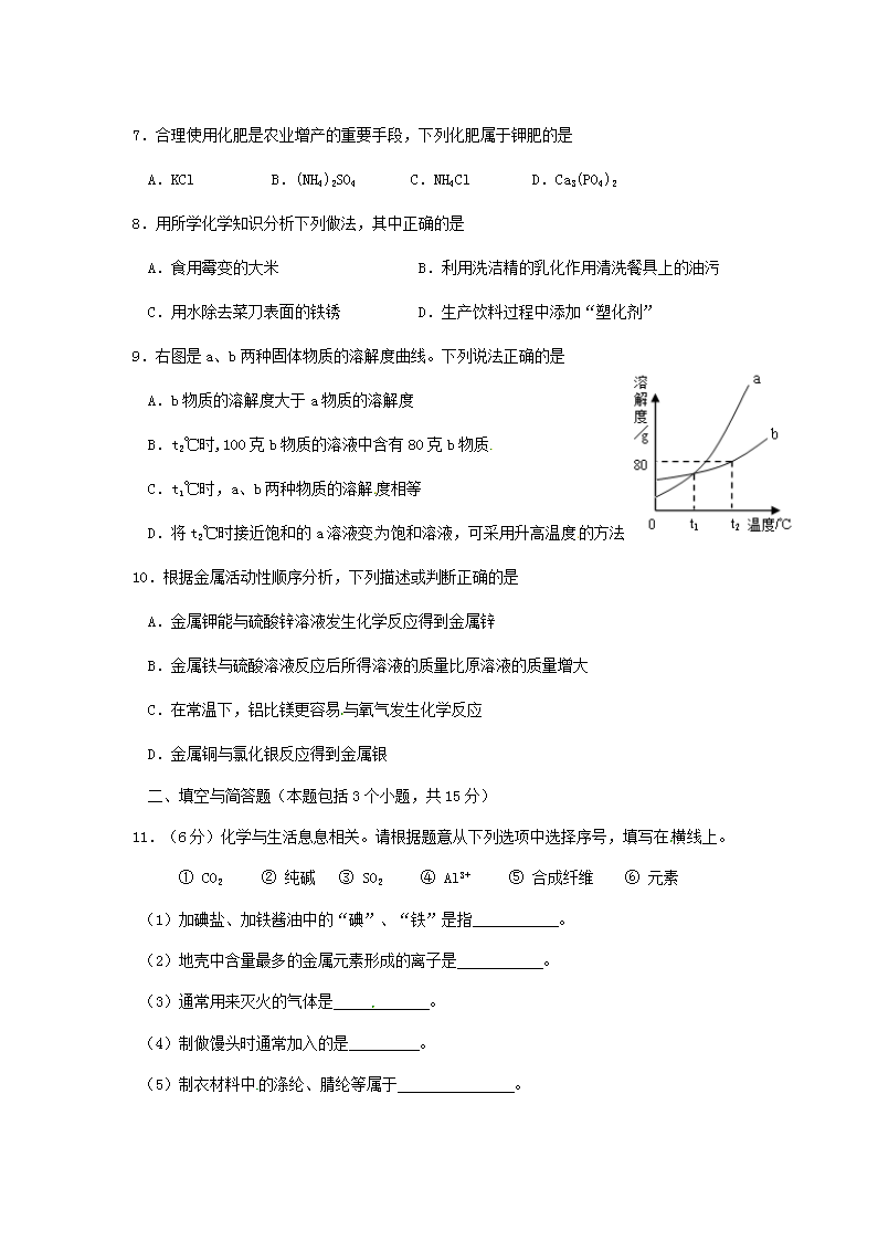 【文档名称】 2011年内蒙古呼伦贝尔中考化学真题及答案(Word版).doc