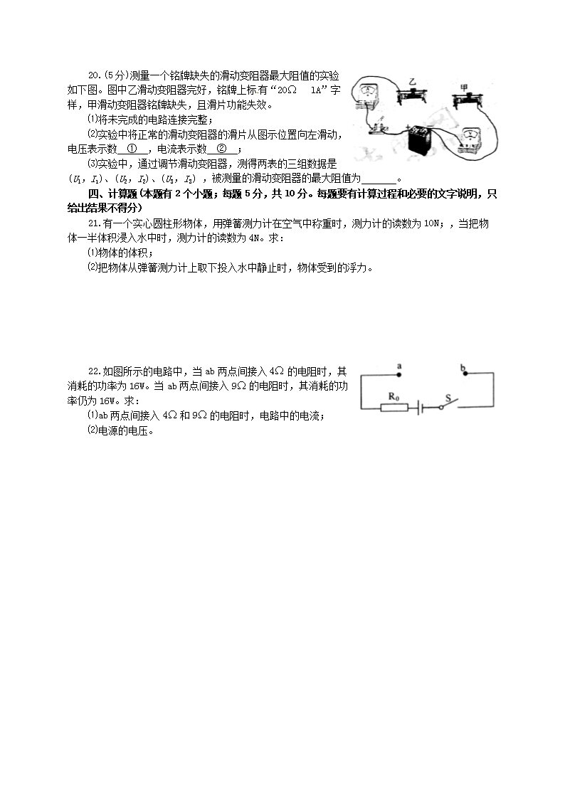 【文档预览】 无忧考网整理发布2010年新疆乌鲁木齐中考物理真题及答案(Word版),前五页预览如下: