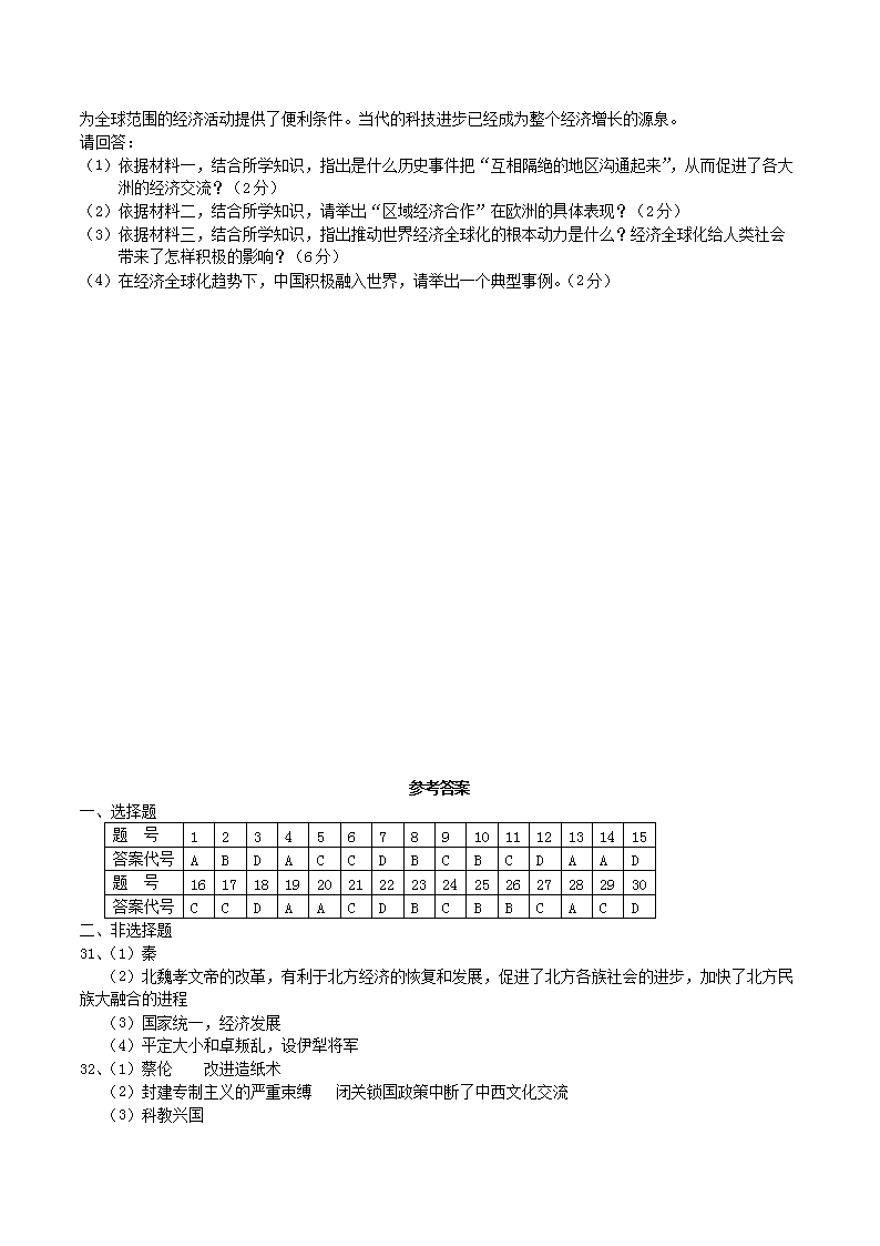 【文档名称】 2010年湖南省岳阳市中考历史真题及答案(Word版).doc
