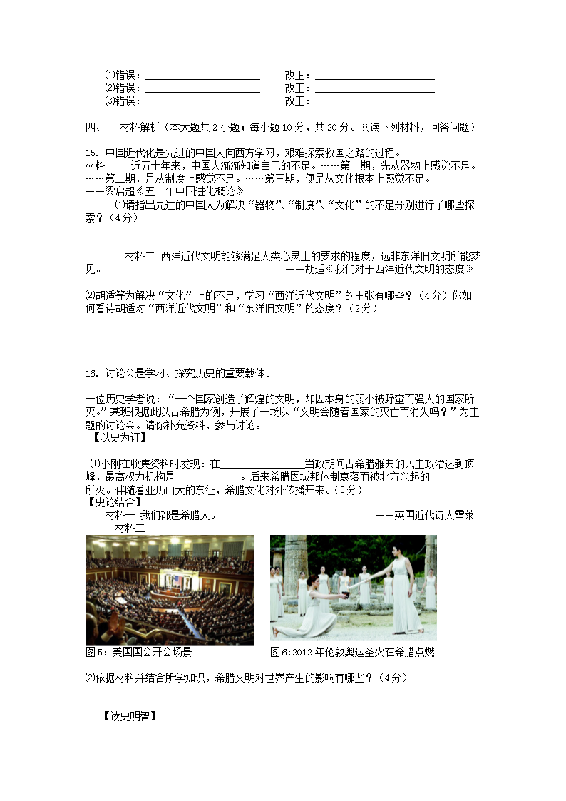 【文档名称】 2012年安徽铜陵中考历史真题及答案(Word版).doc