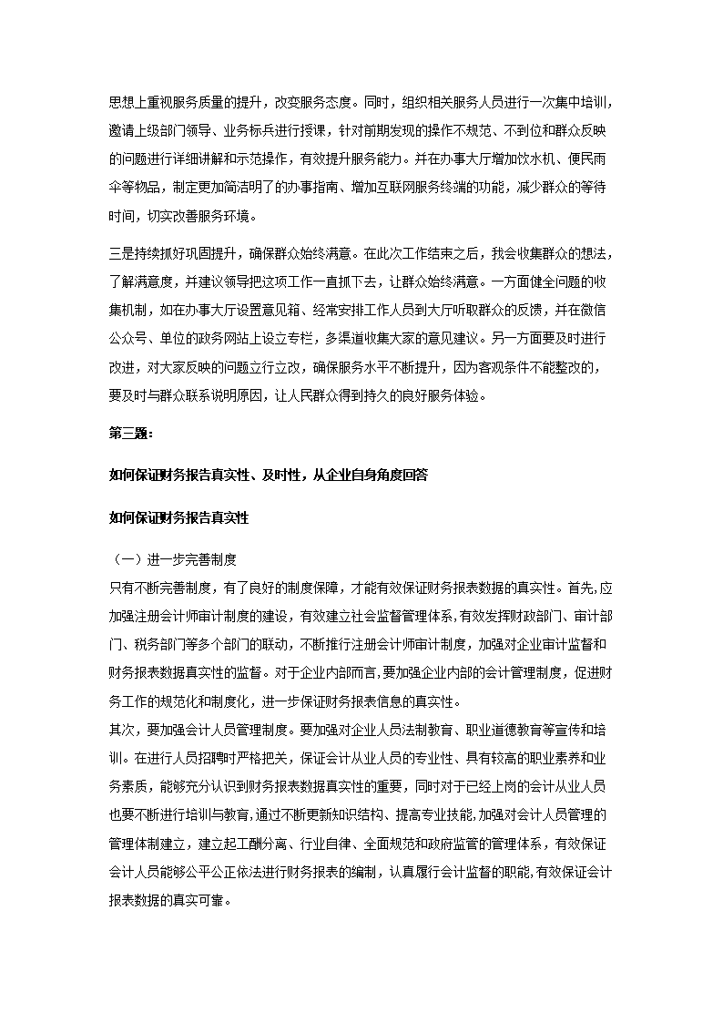 【文档名称】 2020年12月10日中国人民银行重庆分行会计岗面试真题及参考答案(Word版).doc