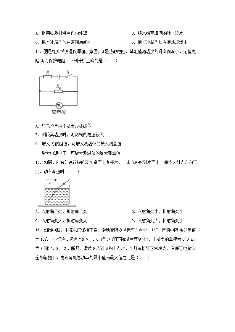 【文档名称】 2021年福建泉州中考物理试题及答案(Word版).doc