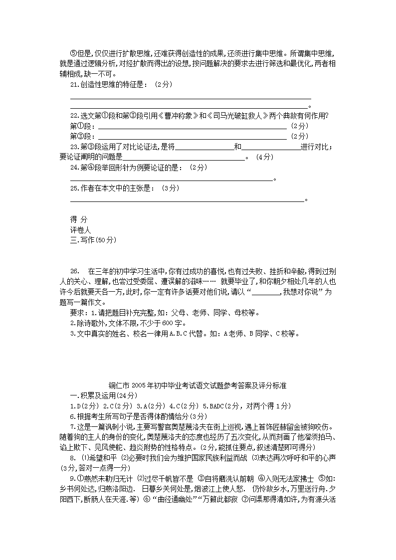 【文档名称】 2005年贵州铜仁市中考语文真题及答案(Word版).doc