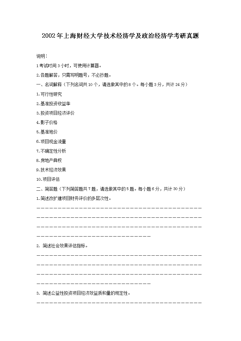 【文档名称】 2002年上海财经大学技术经济学及政治经济学考研真题(Word版).doc