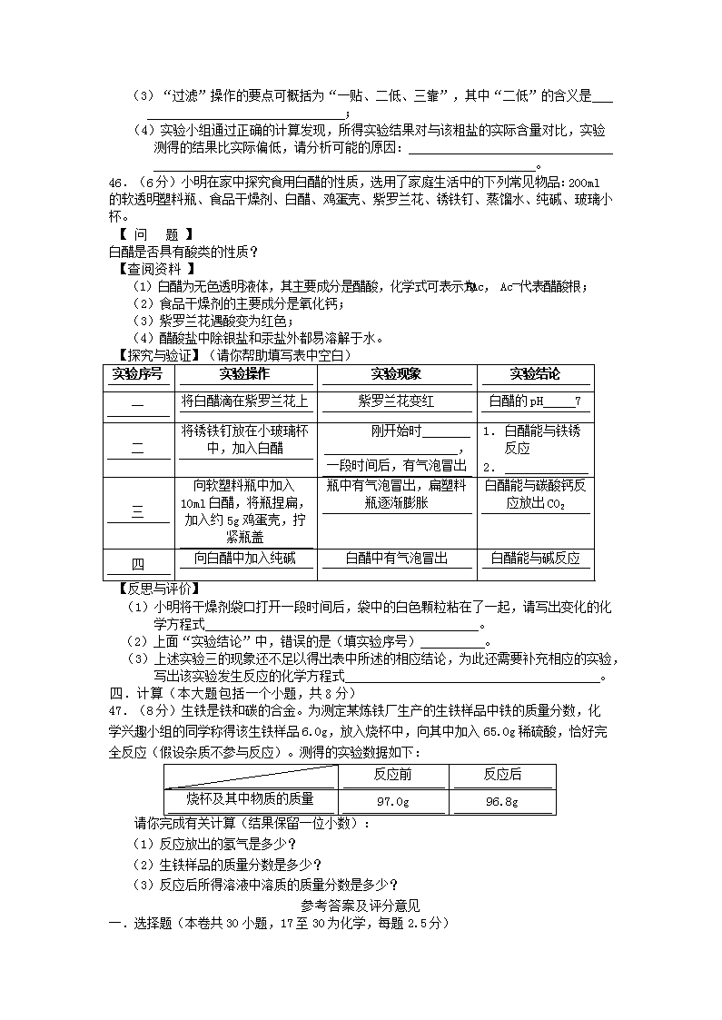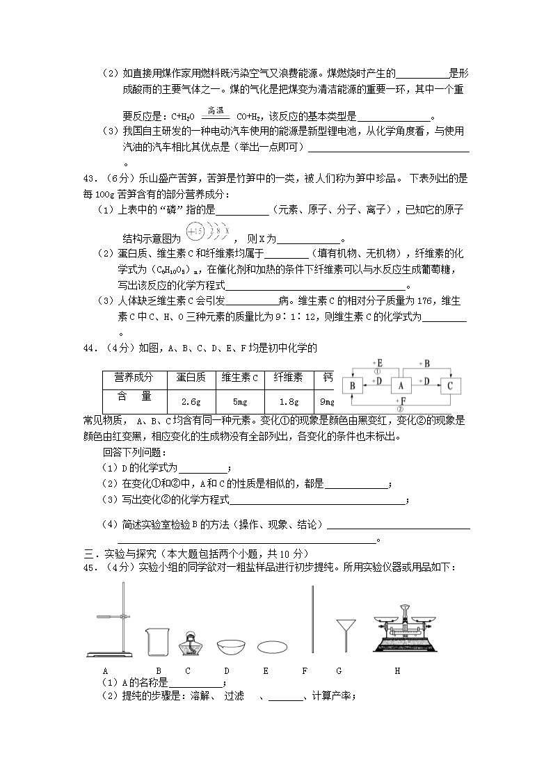 【文档名称】 2010年四川省乐山市中考化学真题及答案(Word版).doc