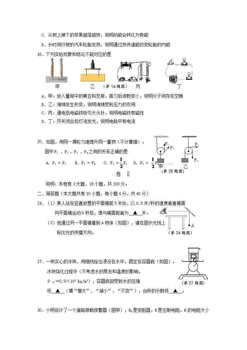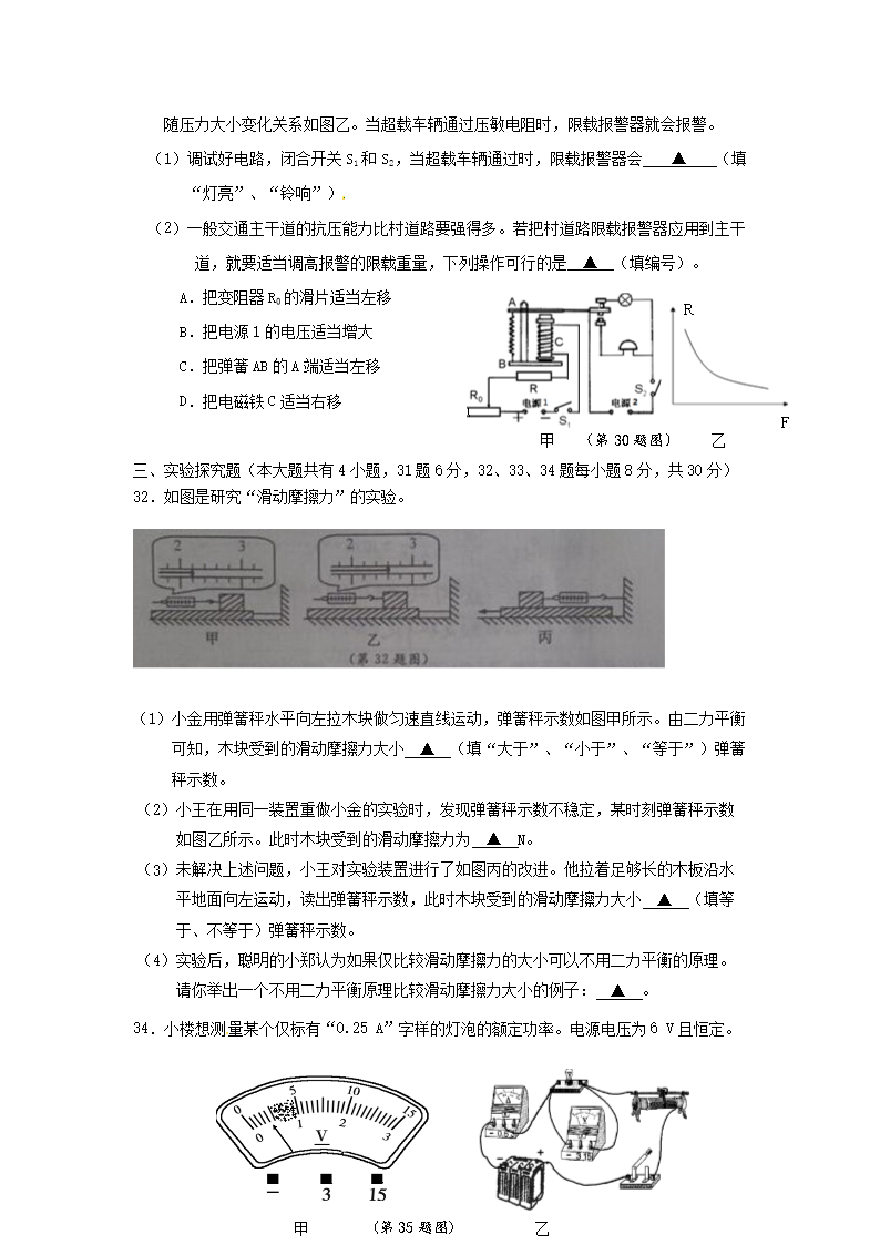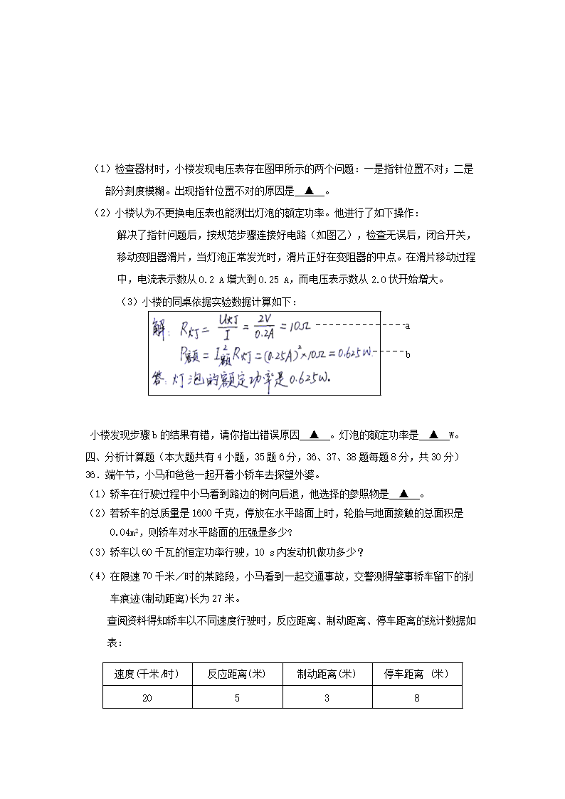 【文档名称】 2014浙江省金华市中考物理真题及答案(Word版).doc