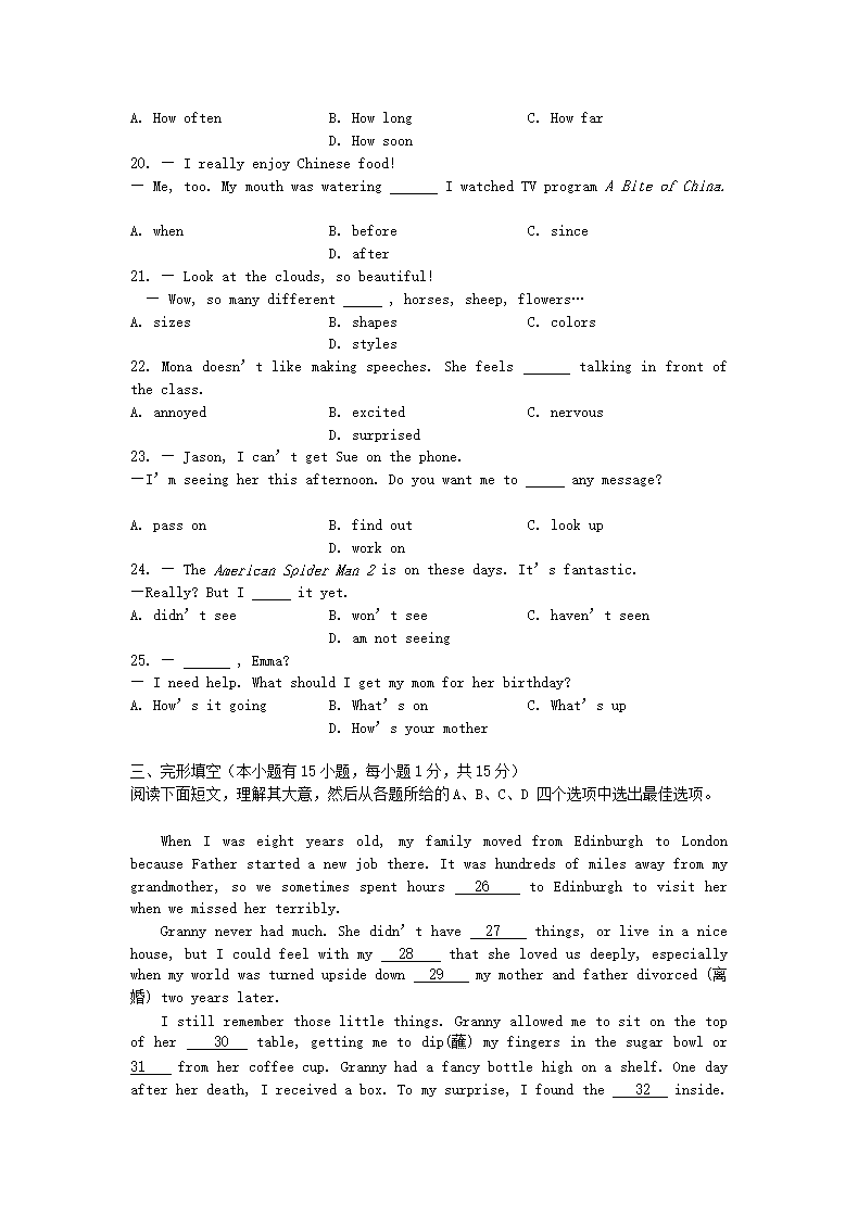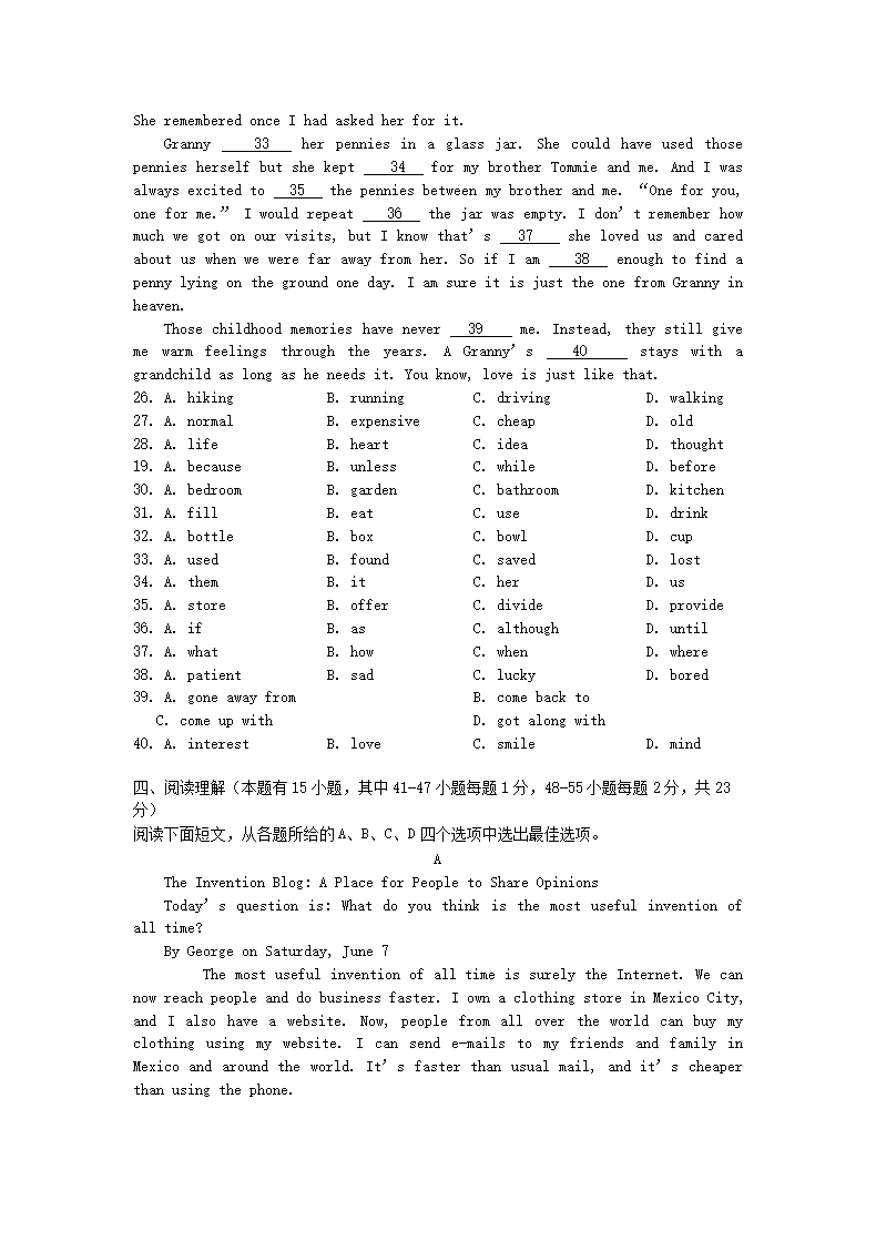 【文档名称】 2014浙江省湖州市中考英语真题(Word版).doc