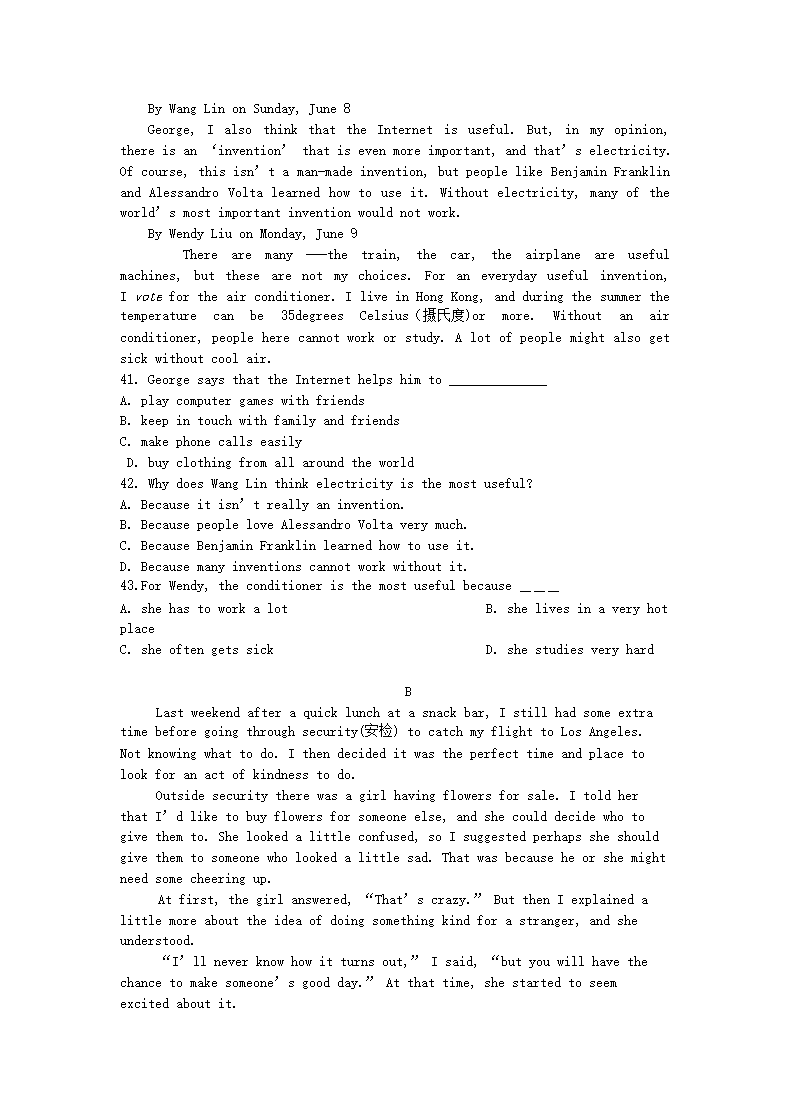【文档预览】 无忧考网整理发布2014浙江省湖州市中考英语真题(Word版),前五页预览如下: