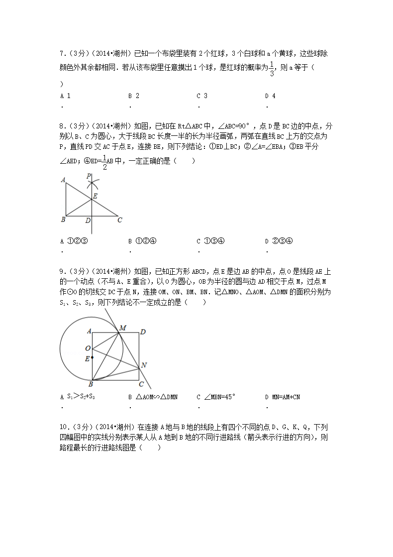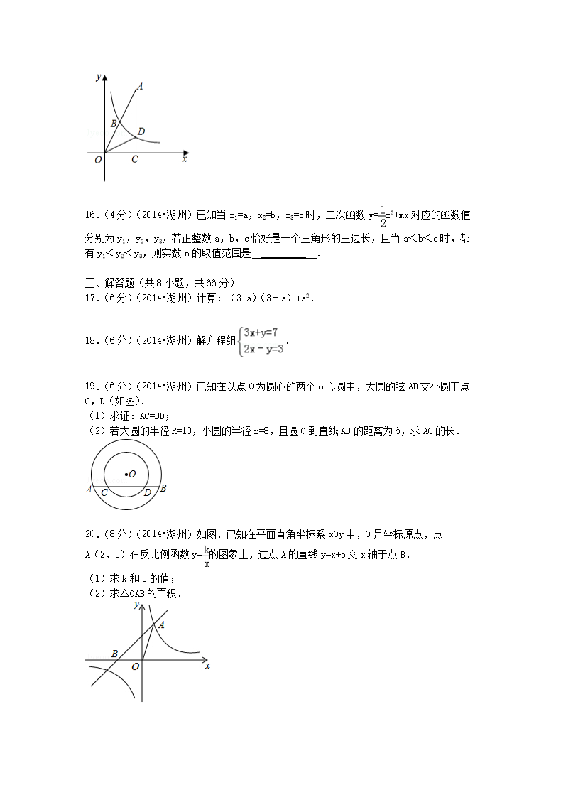 【文档名称】 2014浙江省湖州市中考数学真题及答案(Word版).doc