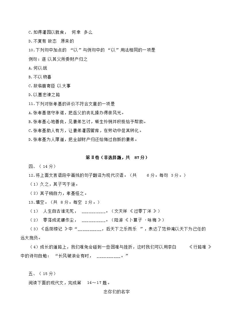 【文档名称】 2010年湖北省武汉市中考语文真题及答案(Word版).doc