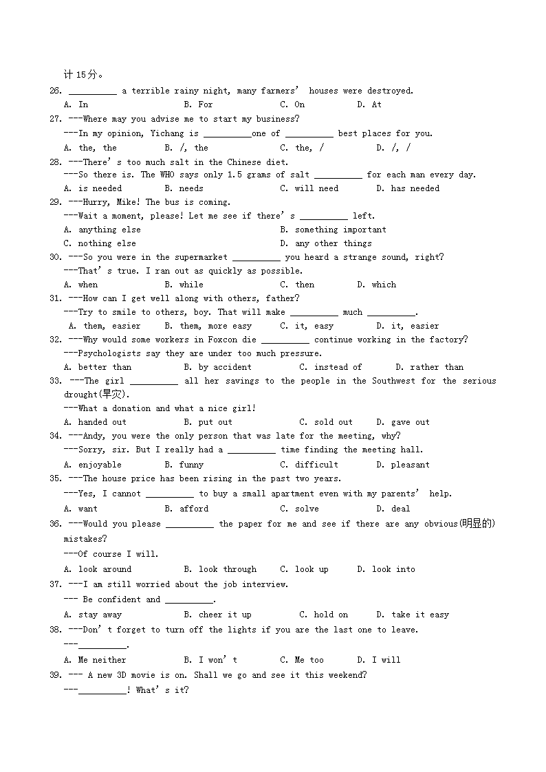 【文档预览】 无忧考网整理发布2010年湖北省宜昌市中考英语真题及答案(Word版),前五页预览如下: