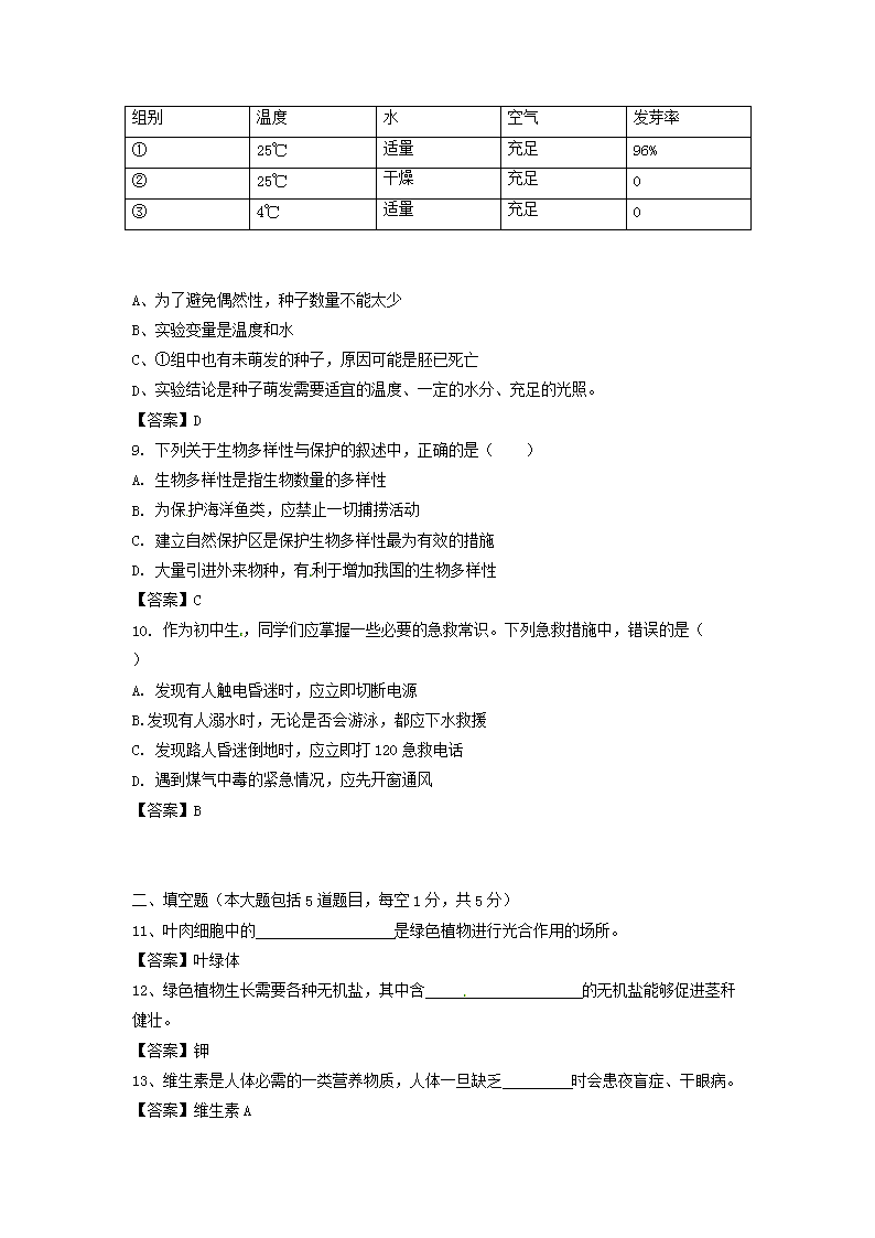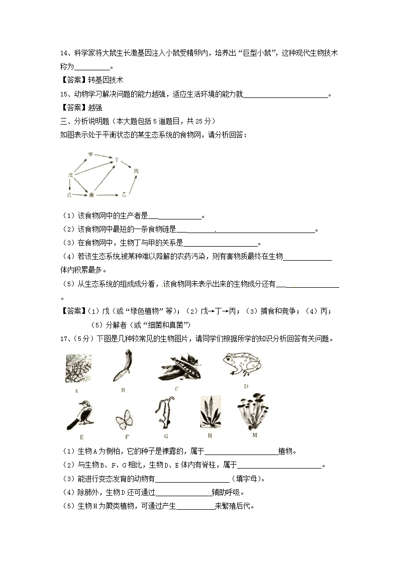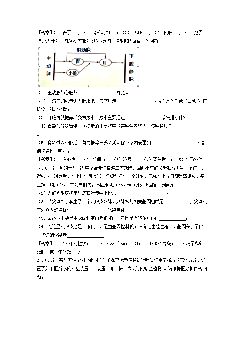 【文档名称】 2017年甘肃省平凉市中考生物真题及答案(Word版).doc