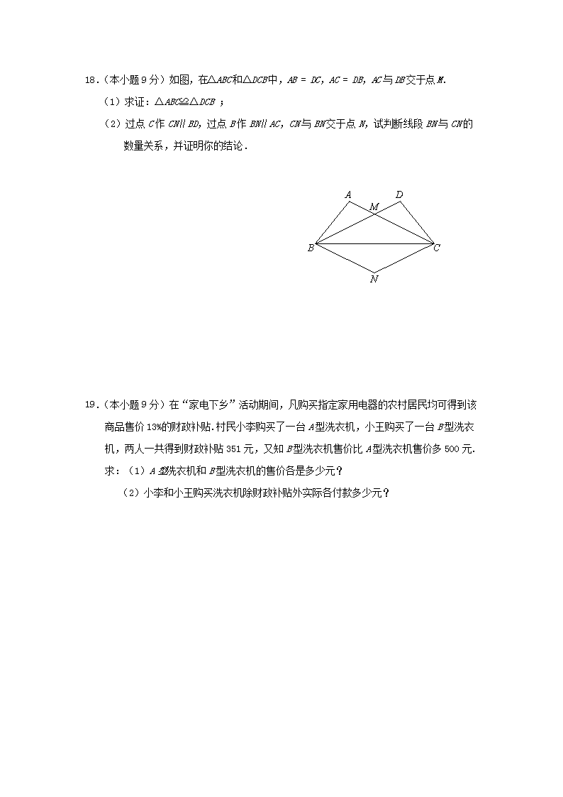 【文档名称】 2009年云南大理中考数学真题及答案(Word版).doc