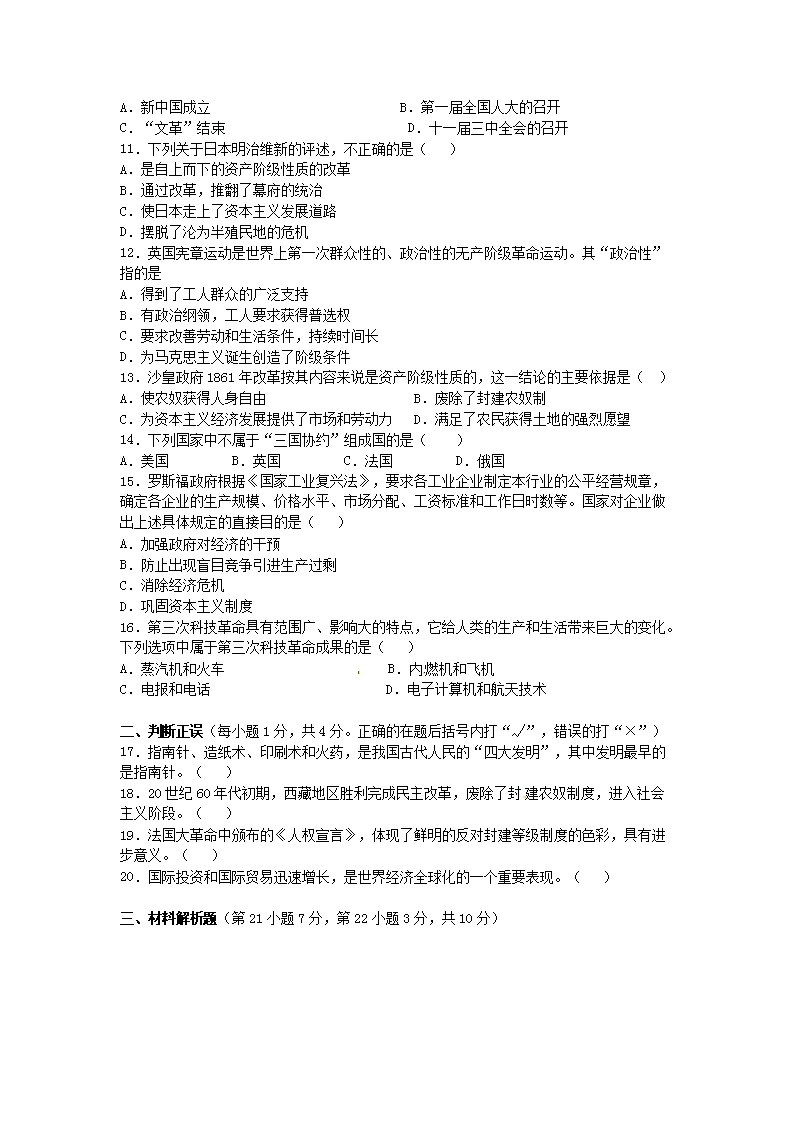 【文档预览】 无忧考网整理发布2010年内蒙古呼和浩特中考历史真题及答案(Word版),前五页预览如下: