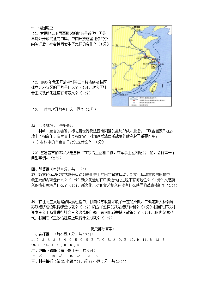 【文档名称】 2010年内蒙古呼和浩特中考历史真题及答案(Word版).doc