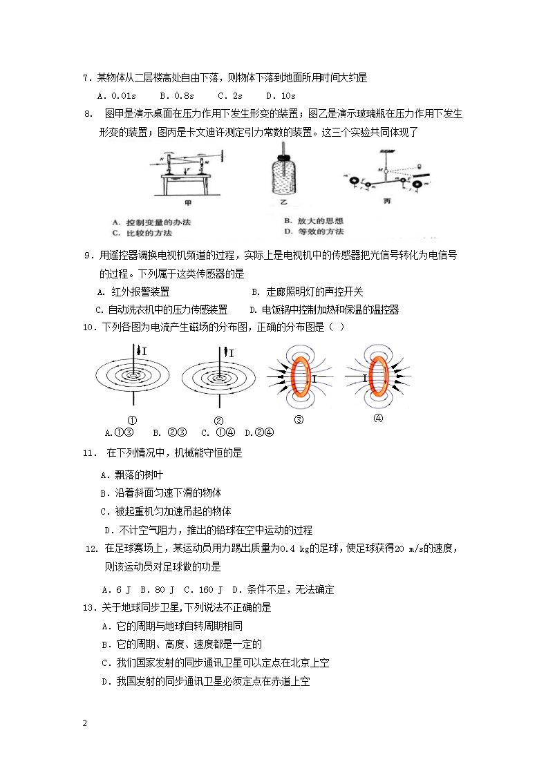 【文档名称】 2010年福建普通高中会考物理真题及答案(Word版).doc