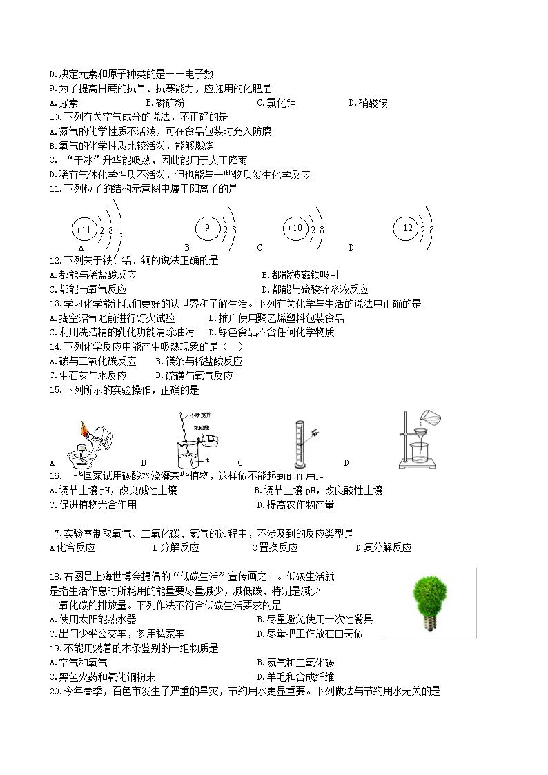【文档名称】 2010年广西百色市中考化学真题及答案(Word版).doc