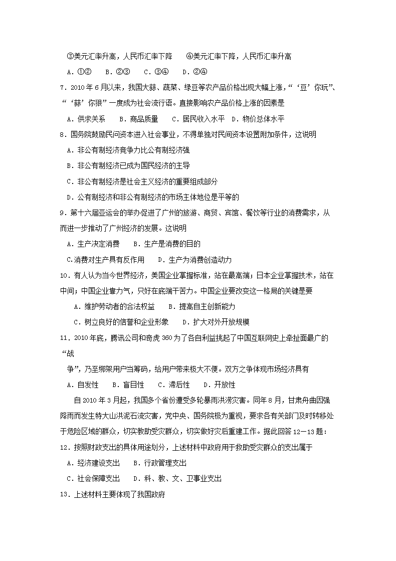 【文档预览】 无忧考网整理发布2011年福建普通高中会考政治真题(Word版),前五页预览如下: