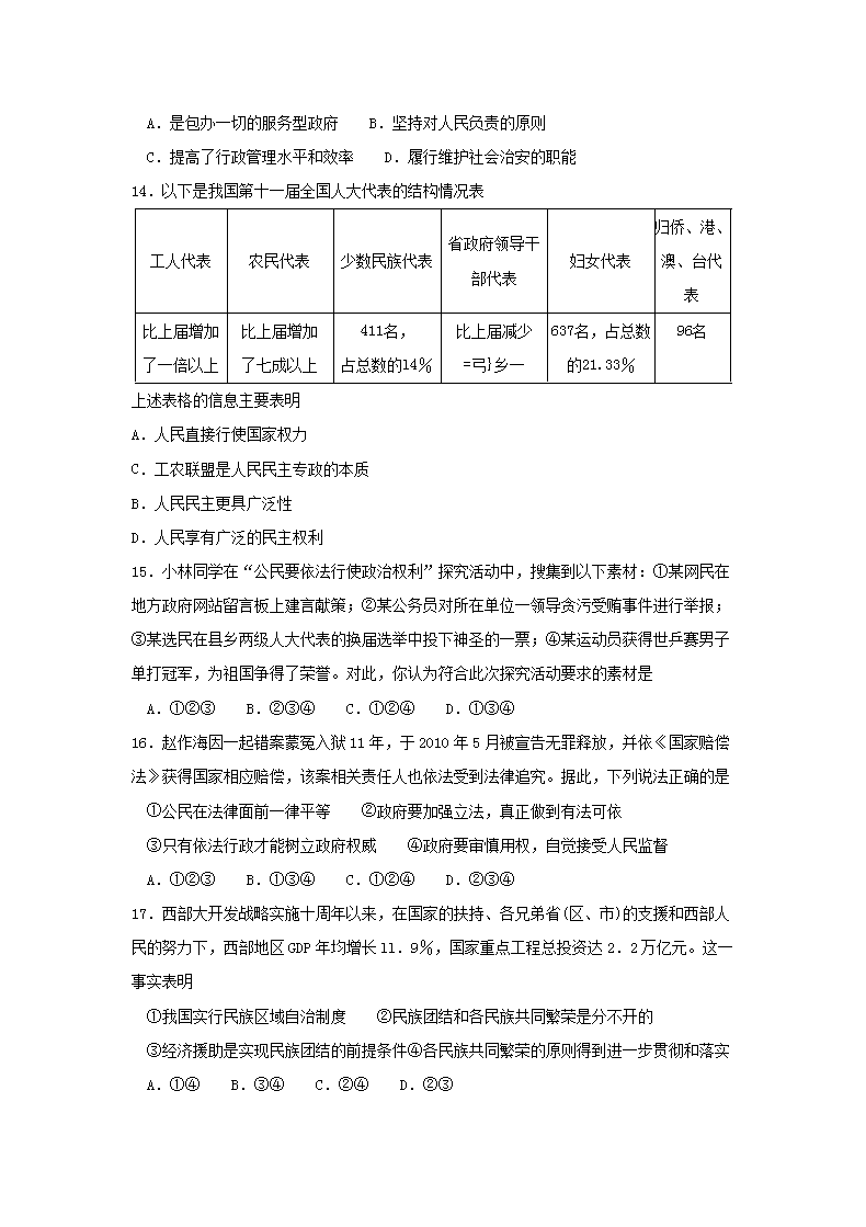【文档名称】 2011年福建普通高中会考政治真题(Word版).doc