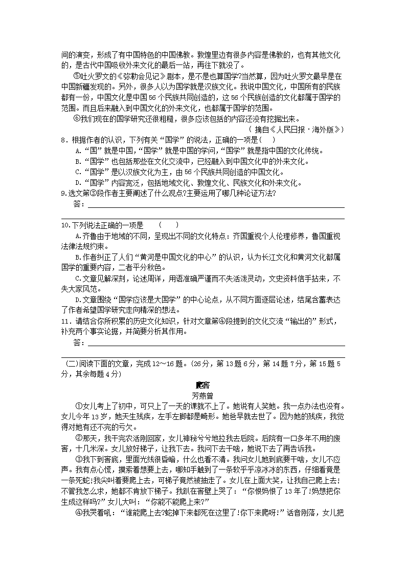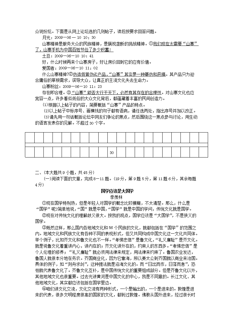 【文档名称】 2009年新疆乌鲁木齐中考语文真题及答案(Word版).doc