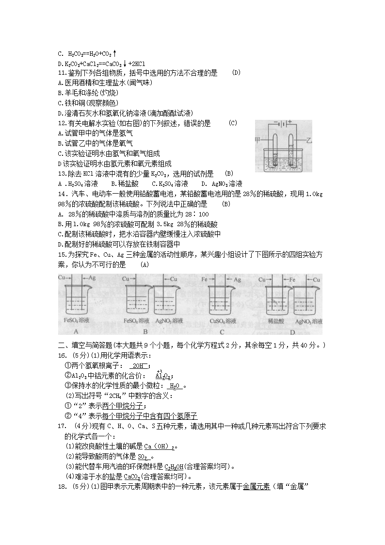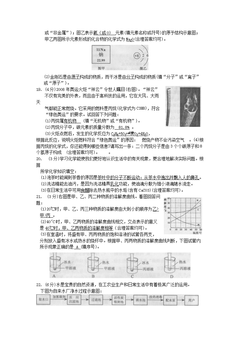 【文档名称】 2008年云南昆明中考化学真题及答案(Word版).doc