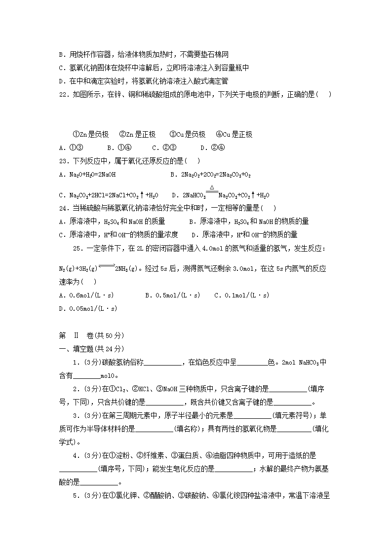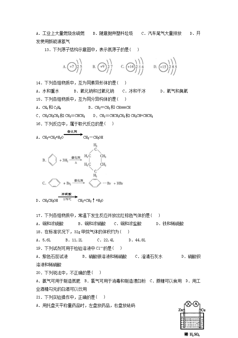 【文档名称】 2004年北京普通高中会考化学真题及答案(Word版).doc