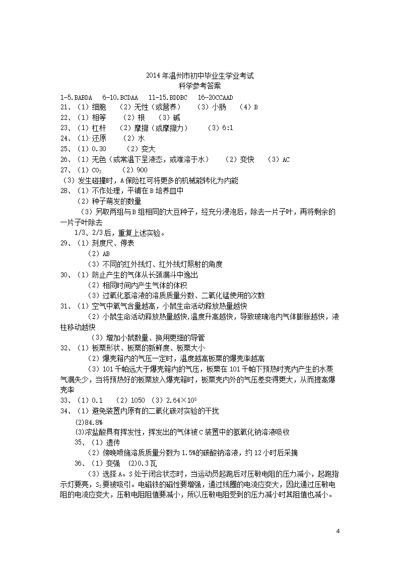 【文档名称】 2014浙江省温州市中考生物真题及答案(Word版).doc