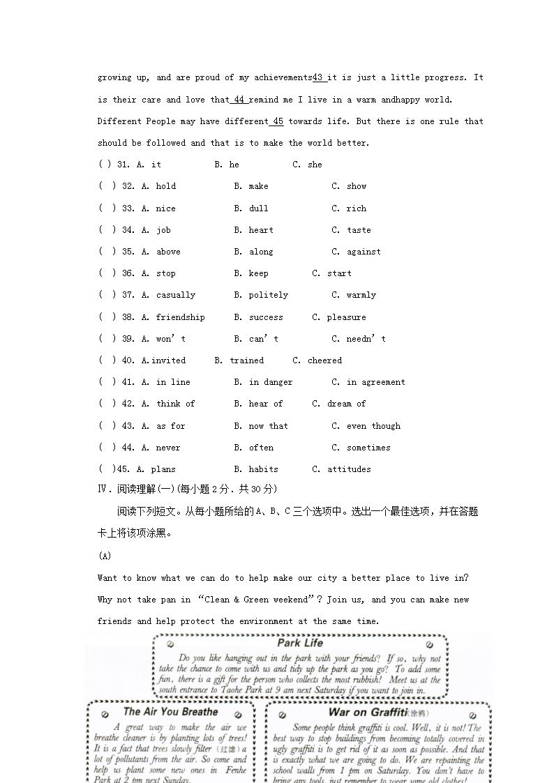 【文档预览】 无忧考网整理发布2013年山西省朔州中考英语真题及答案(Word版),前五页预览如下: