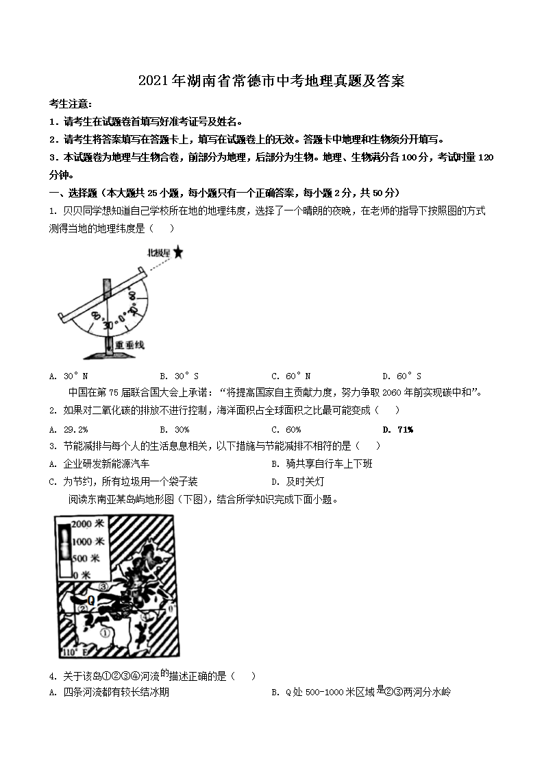 【文档预览】 无忧考网整理发布2021年湖南省常德市中考地理真题及答案(Word版),前五页预览如下: