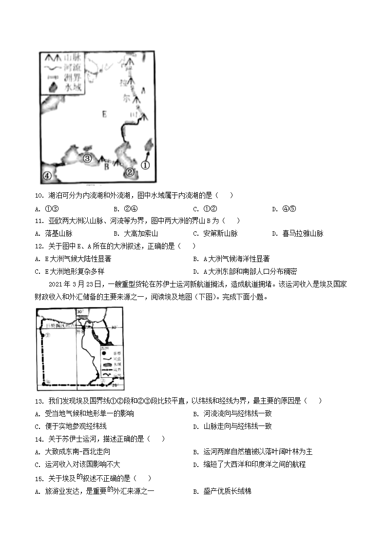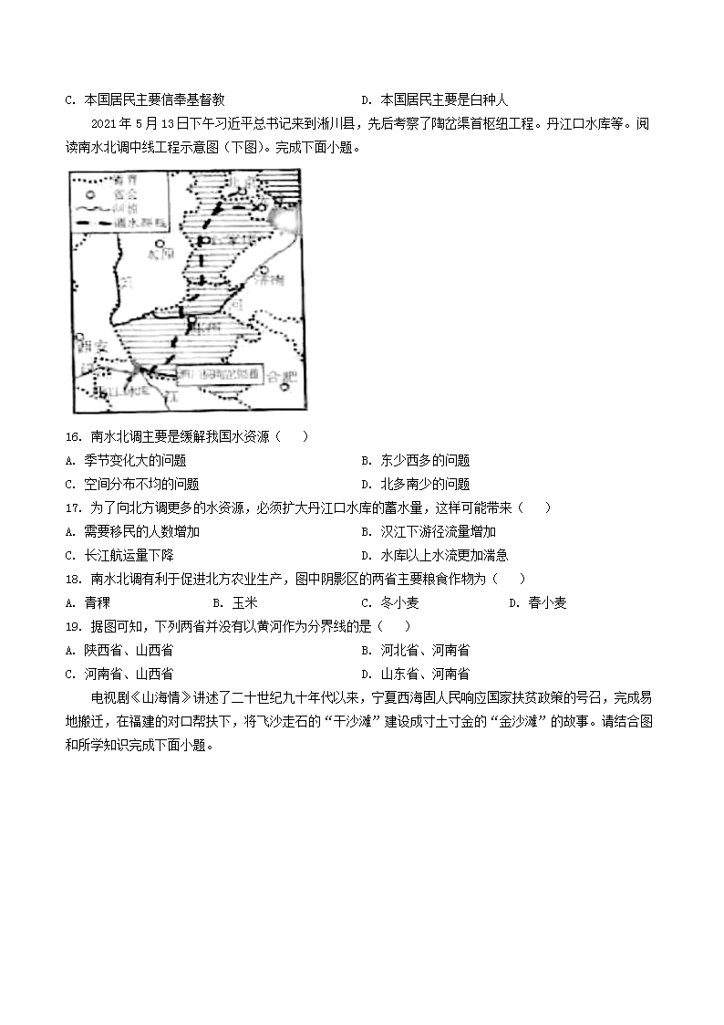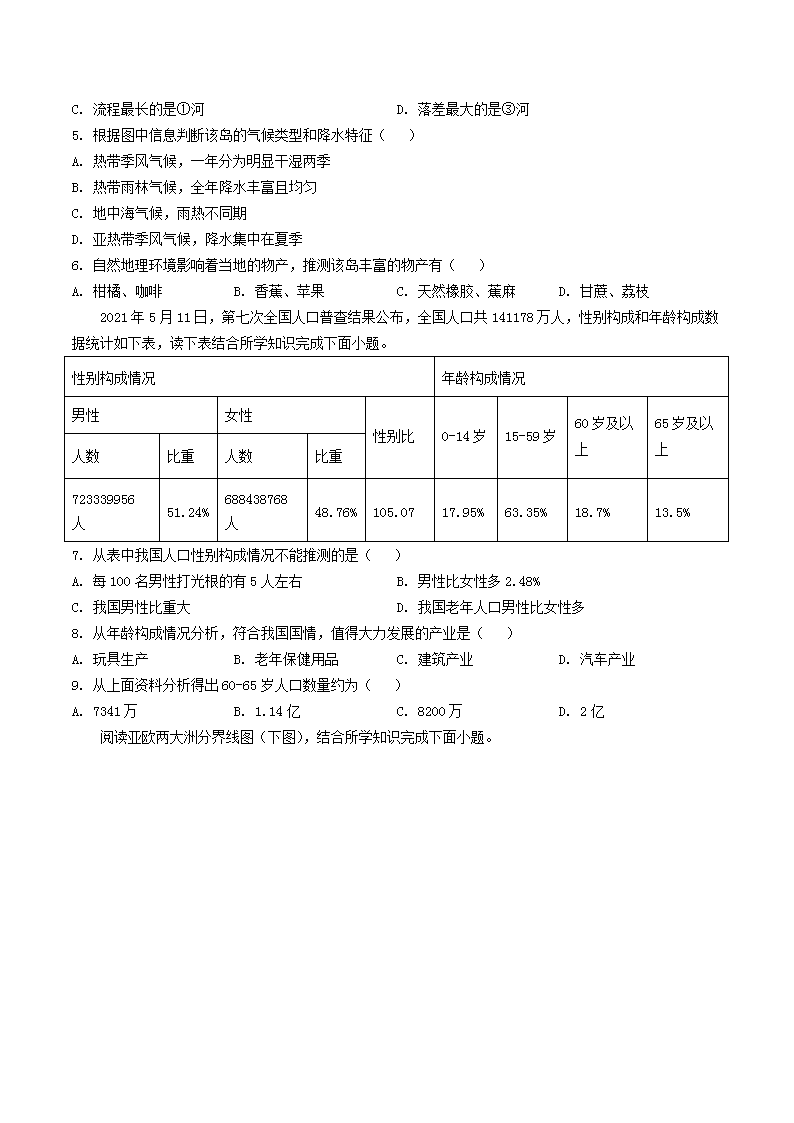 【文档名称】 2021年湖南省常德市中考地理真题及答案(Word版).doc