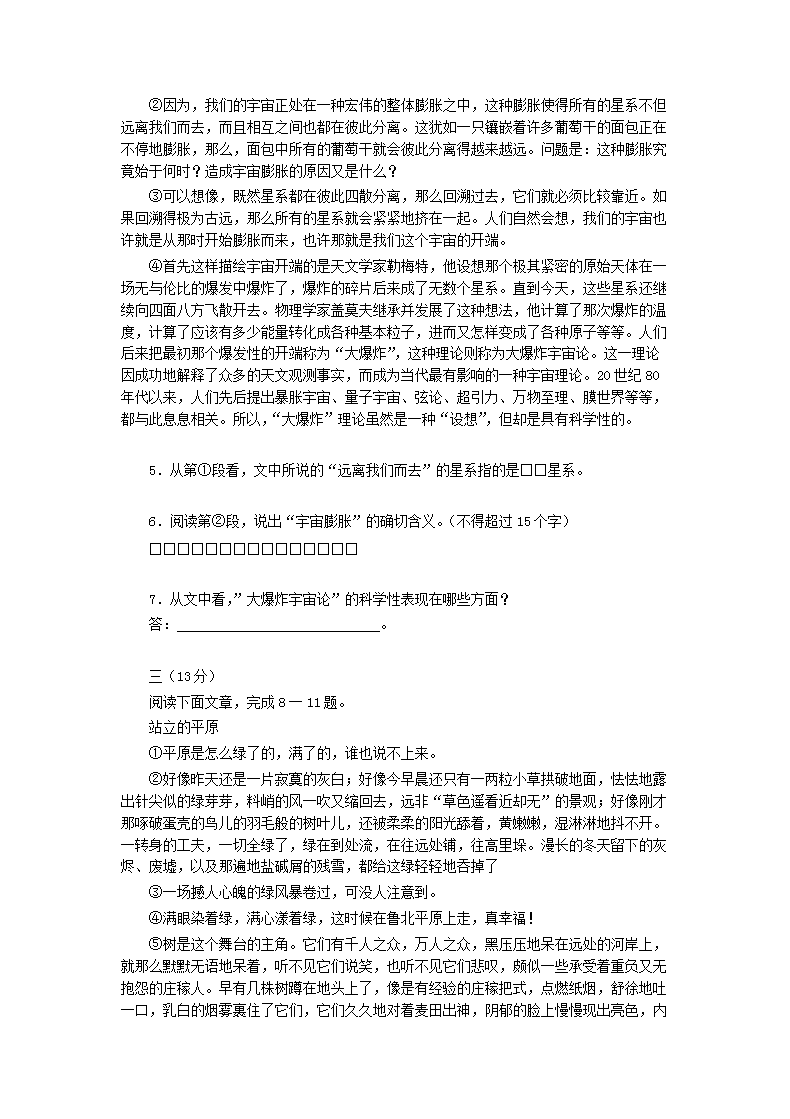 【文档名称】 2003年北京普通高中会考语文真题及答案(Word版).doc