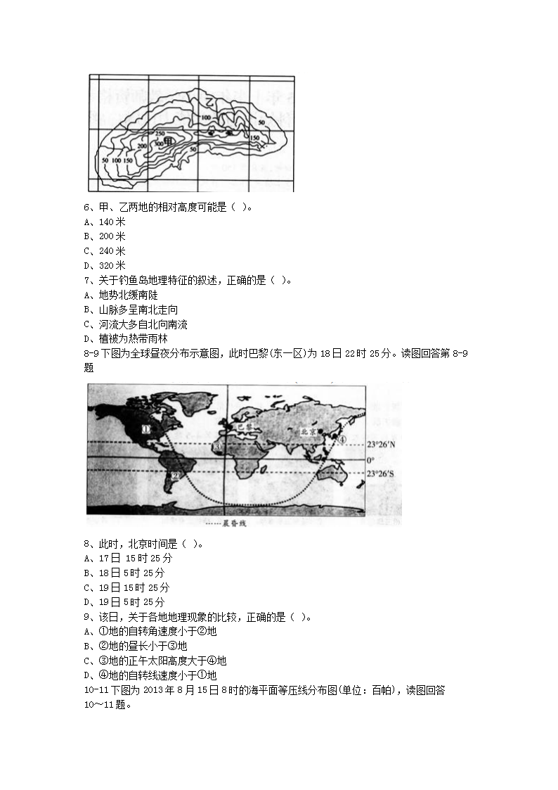【文档名称】 2015上半年辽宁教师资格高中地理学科知识与教学能力真题及答案(Word版).doc