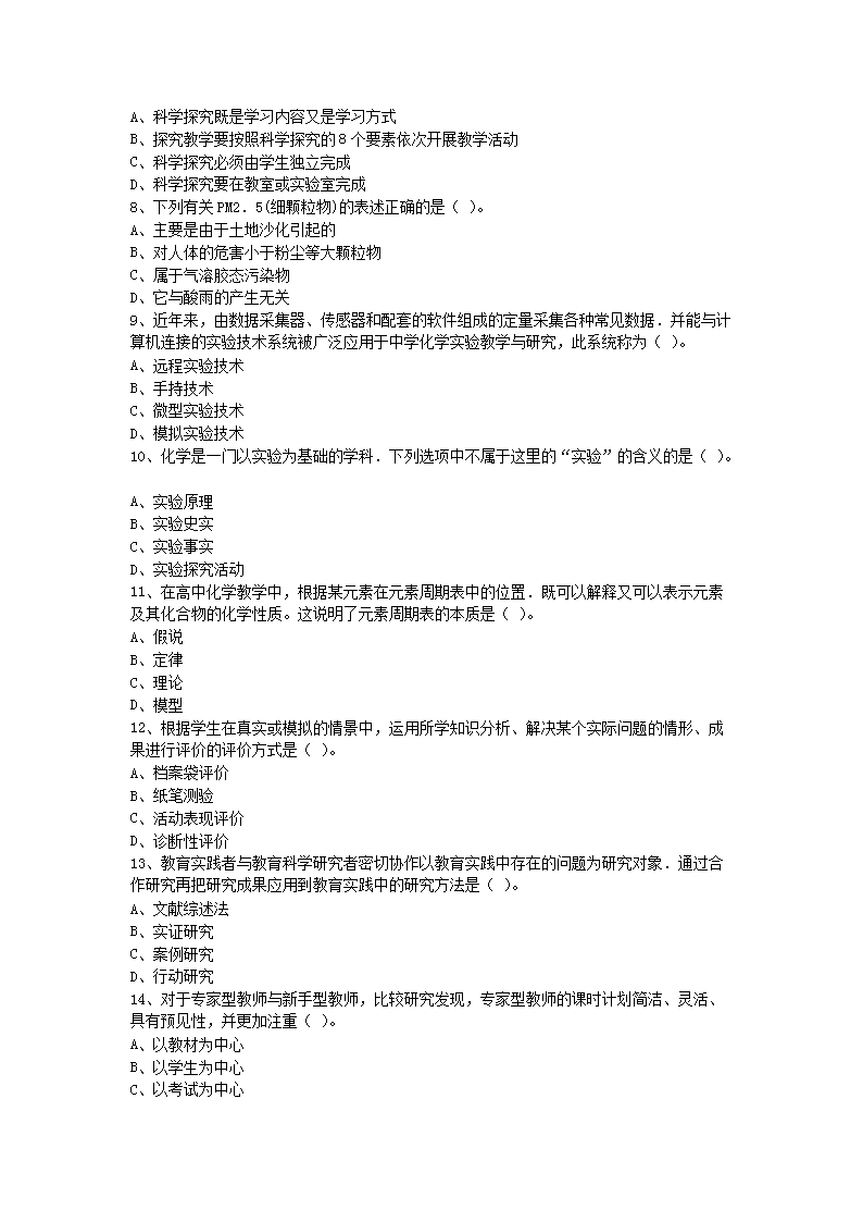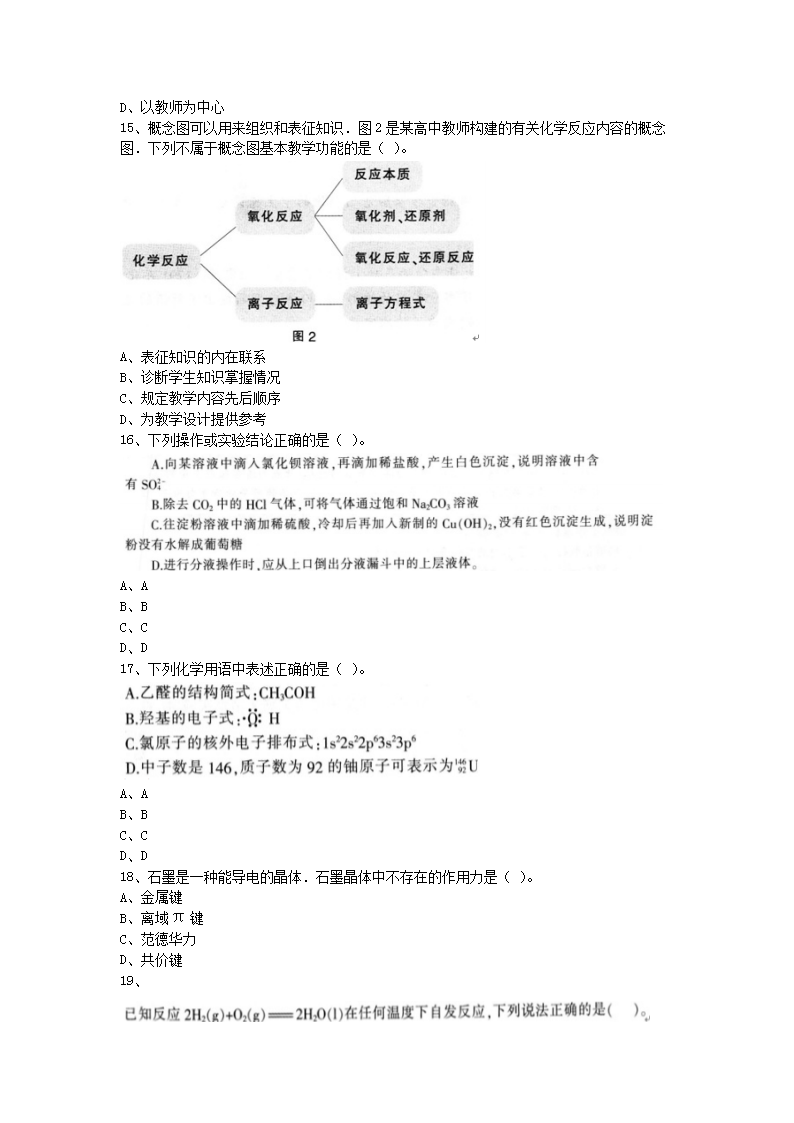 【文档名称】 2015上半年辽宁教师资格高中化学学科知识与教学能力真题及答案(Word版).doc