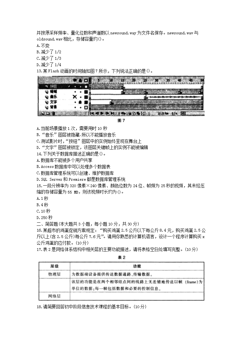 【文档名称】 2015下半年辽宁教师资格初中信息技术学科知识与教学能力真题及答案(Word版).doc