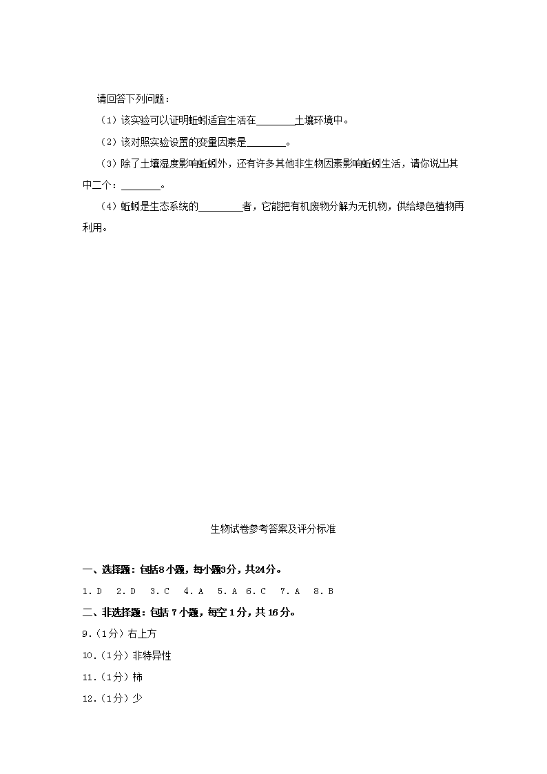 【文档名称】 2012年广东省梅州市中考生物真题及答案(Word版).doc