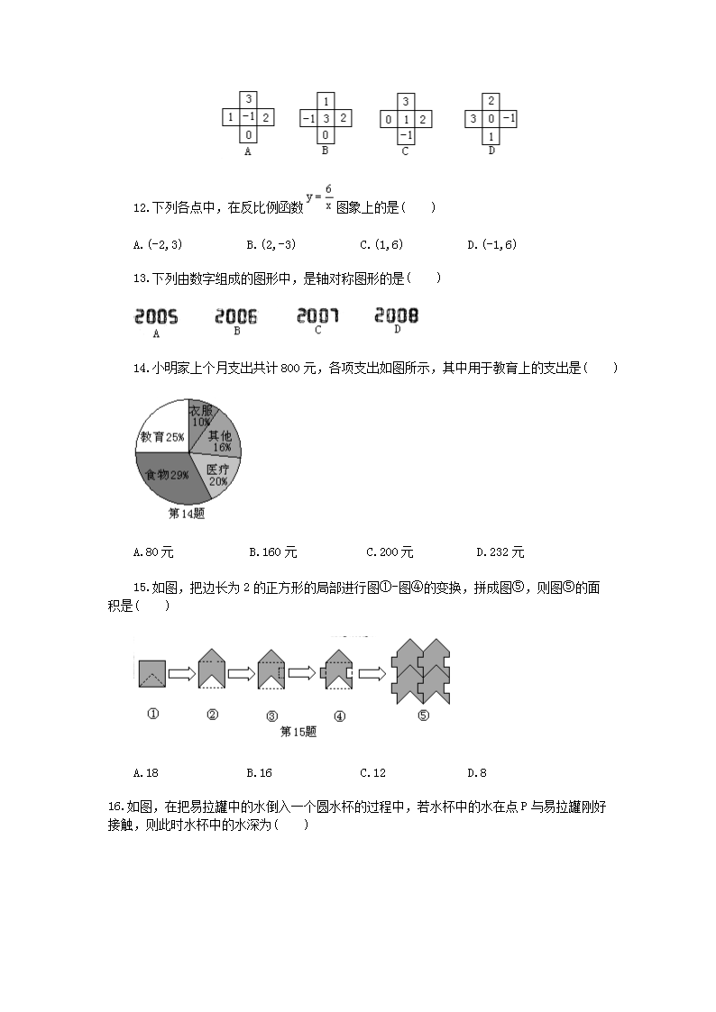 【文档预览】 无忧考网整理发布2006年吉林通化中考数学真题及答案(Word版),前五页预览如下: