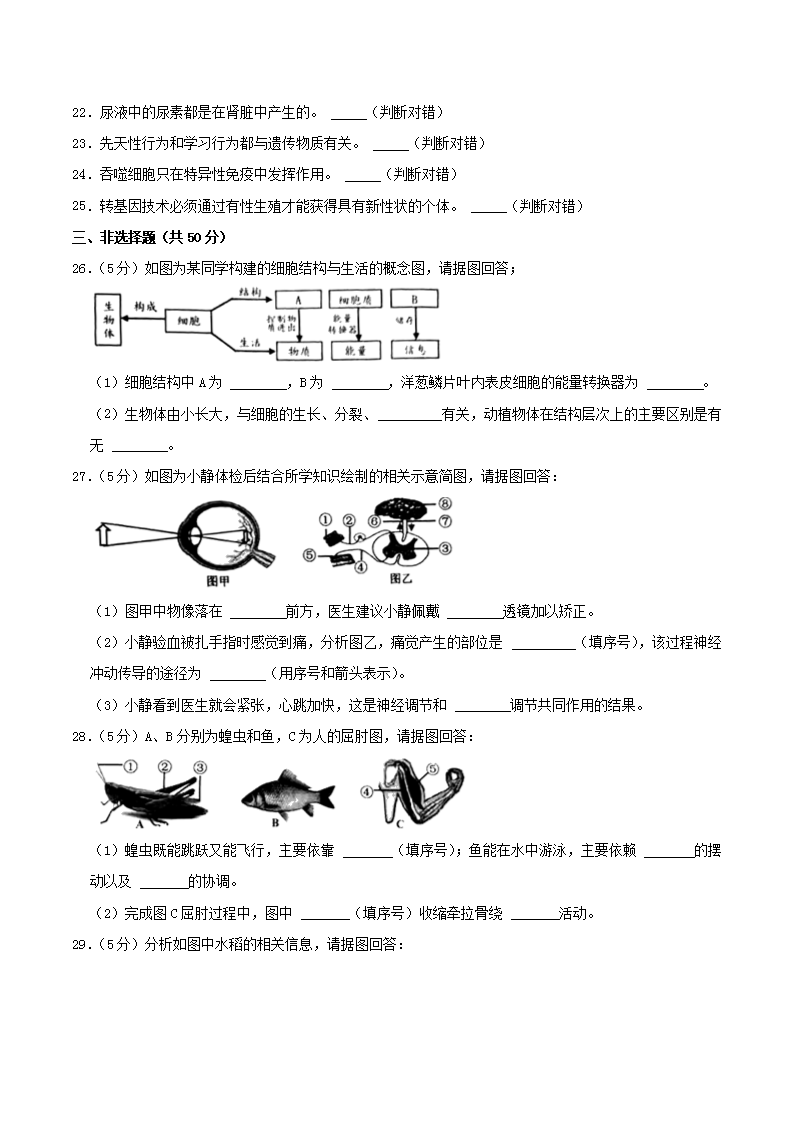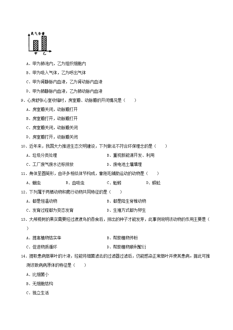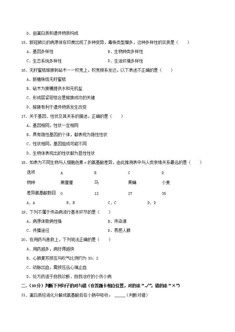 【文档名称】 2021年湖南省岳阳市中考生物真题及答案(Word版).doc