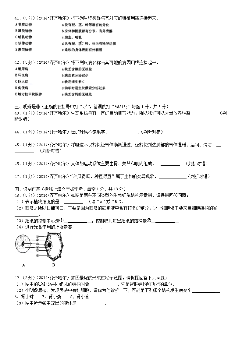 【文档名称】 2014年黑龙江齐齐哈尔中考生物真题及答案(Word版).doc