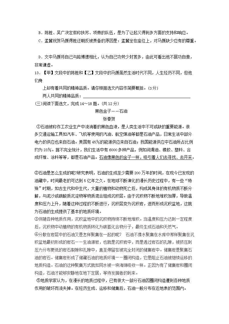 【文档名称】 2008年云南昆明中考语文真题及答案(Word版).doc
