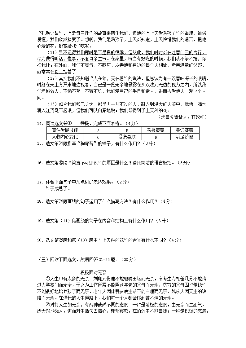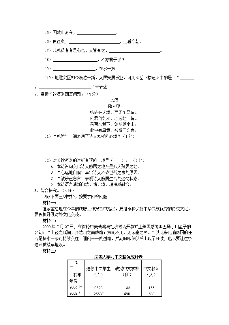 【文档预览】 无忧考网整理发布2010年辽宁省沈阳市中考语文真题及答案(Word版),前五页预览如下: