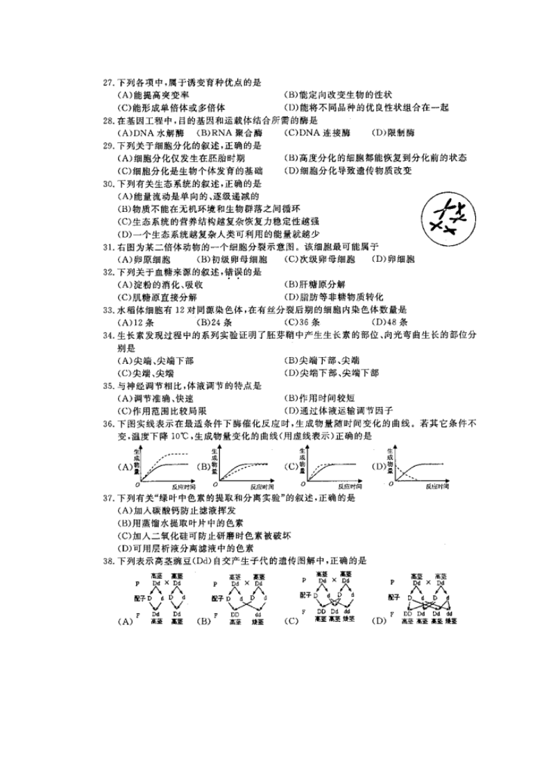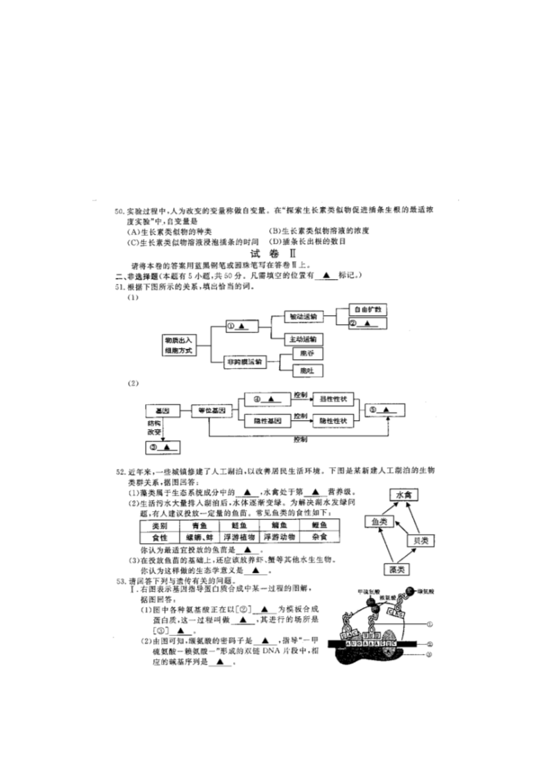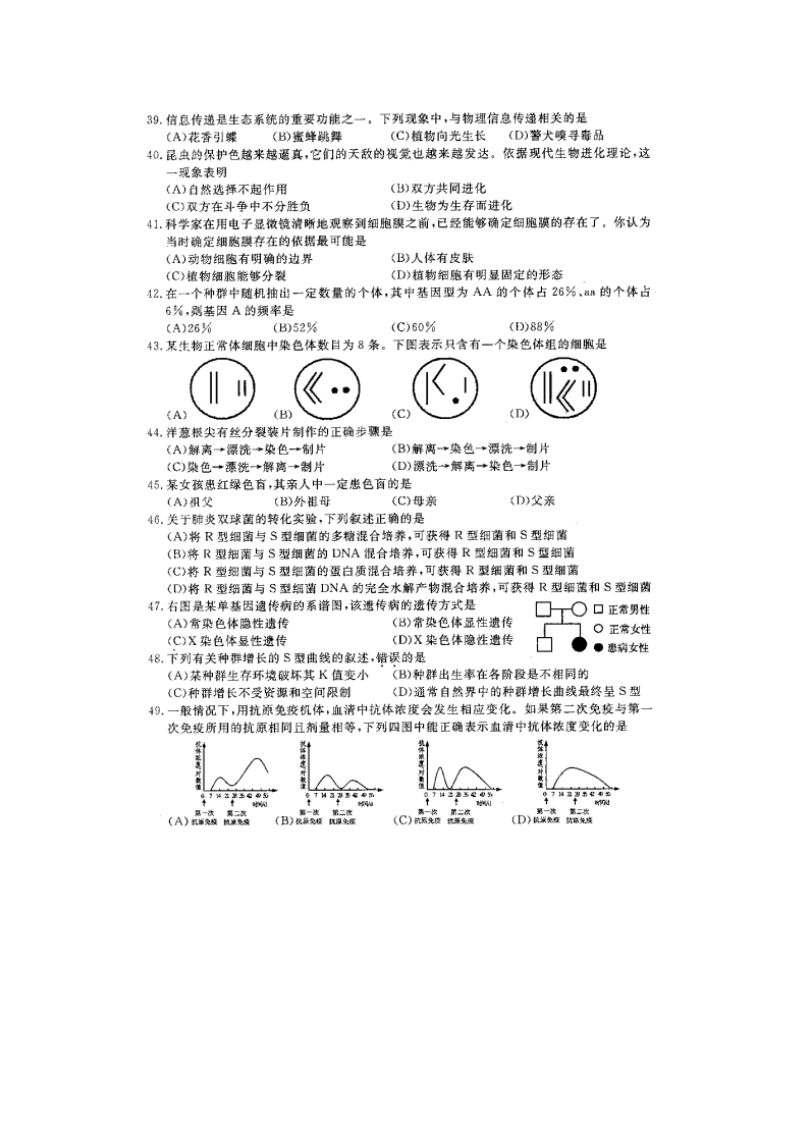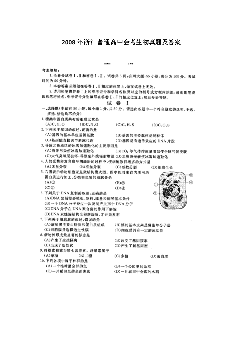 【文档名称】 2008年浙江普通高中会考生物真题及答案(Word版).doc