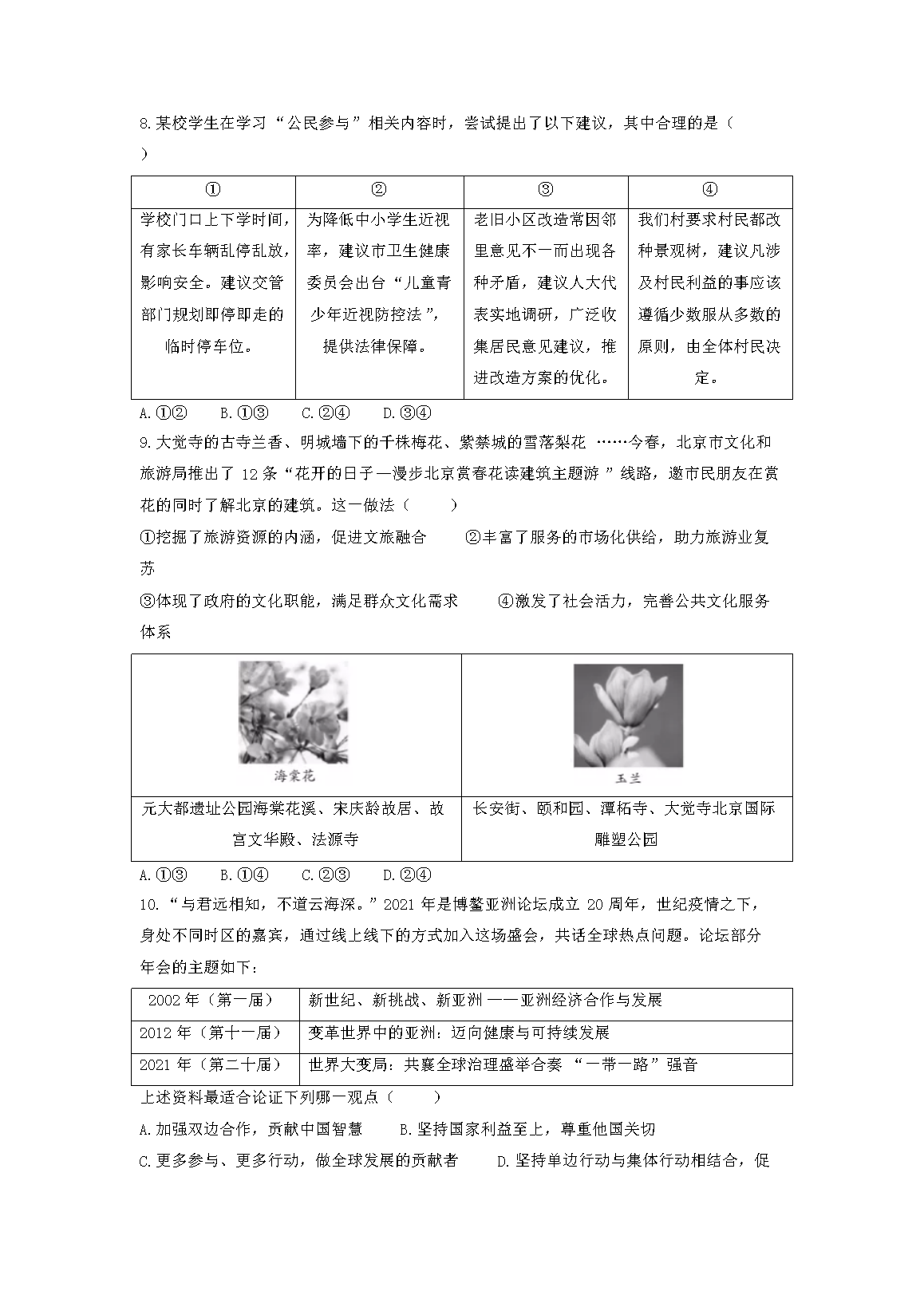 【文档名称】 2021年北京高考政治试题及答案(Word版).doc