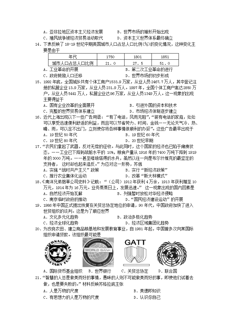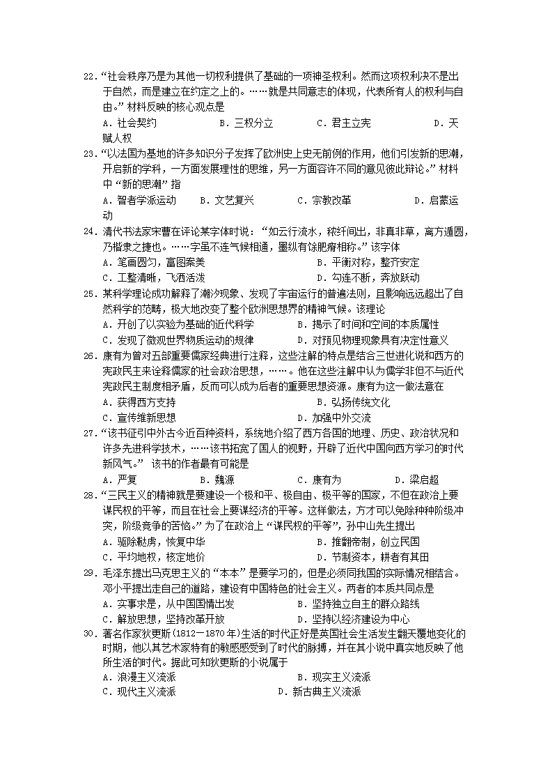【文档预览】 无忧考网整理发布2019年江苏南通普通高中会考历史真题及答案(Word版),前五页预览如下:
