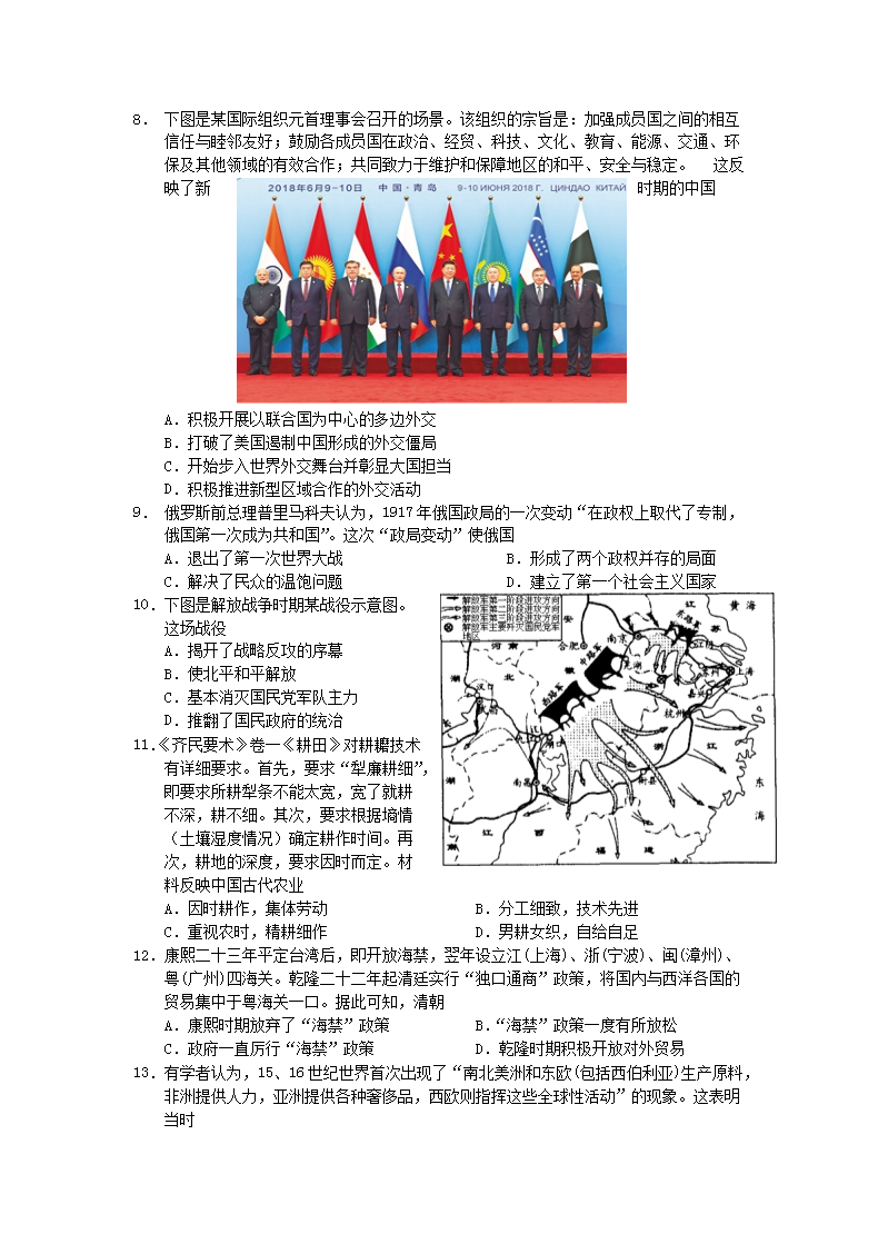 【文档名称】 2019年江苏南通普通高中会考历史真题及答案(Word版).doc