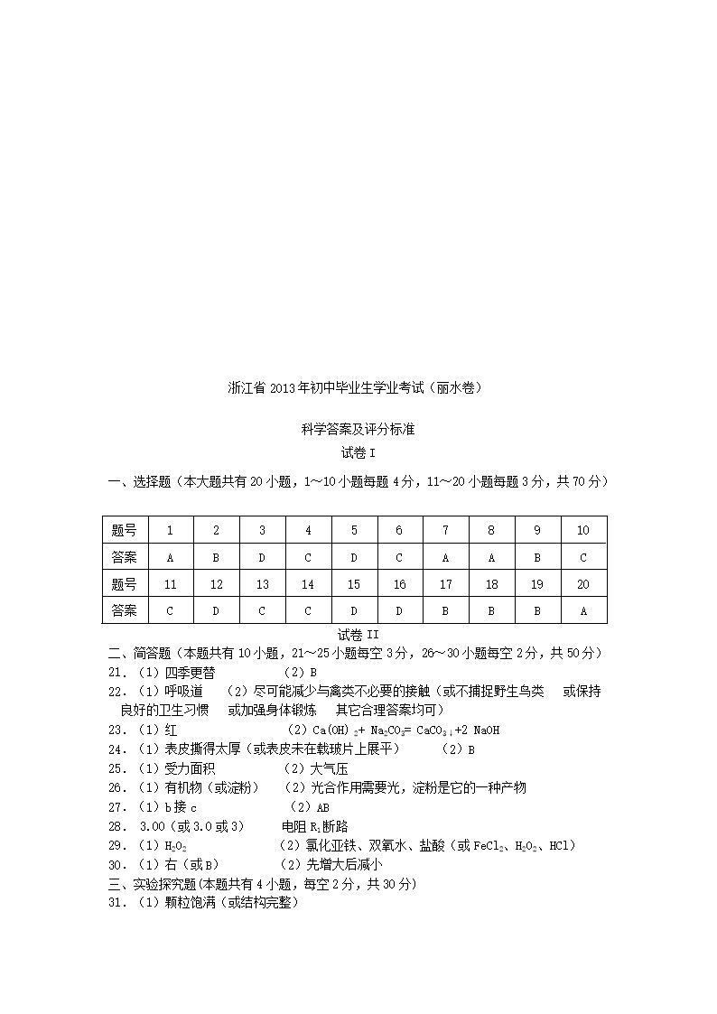 【文档名称】 2013浙江省丽水市中考生物真题及答案(Word版).doc