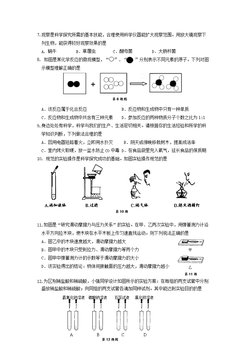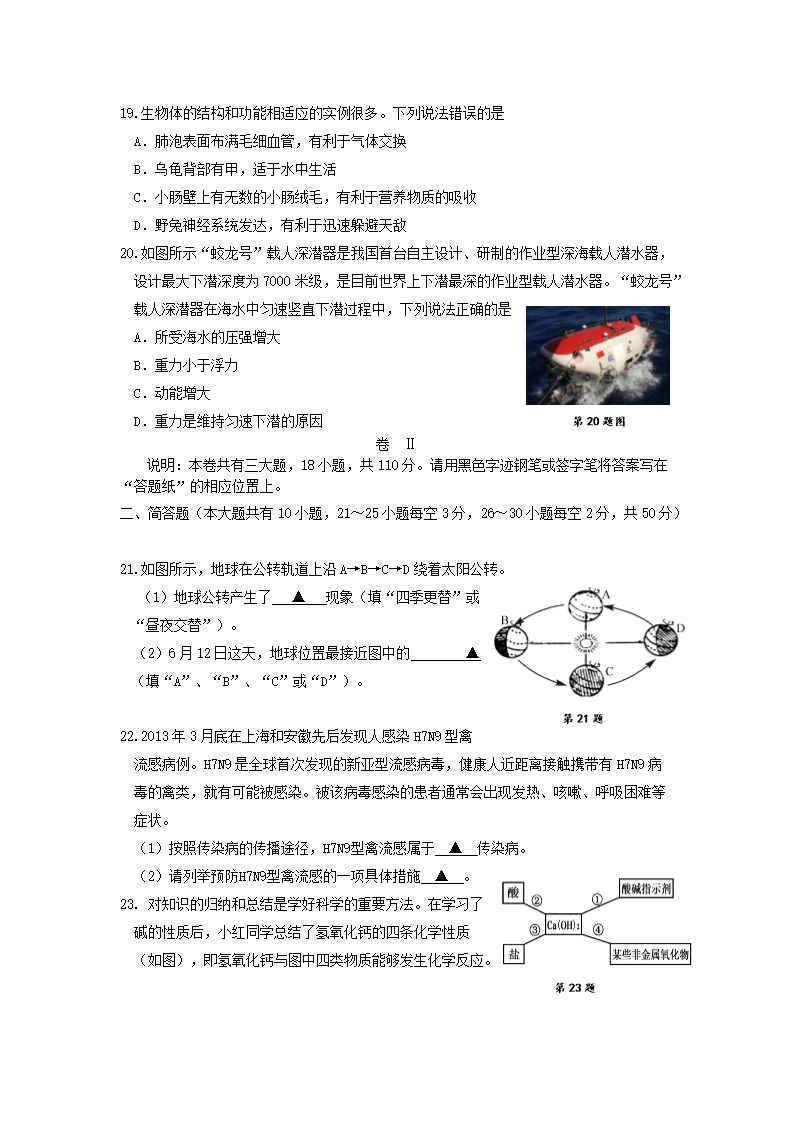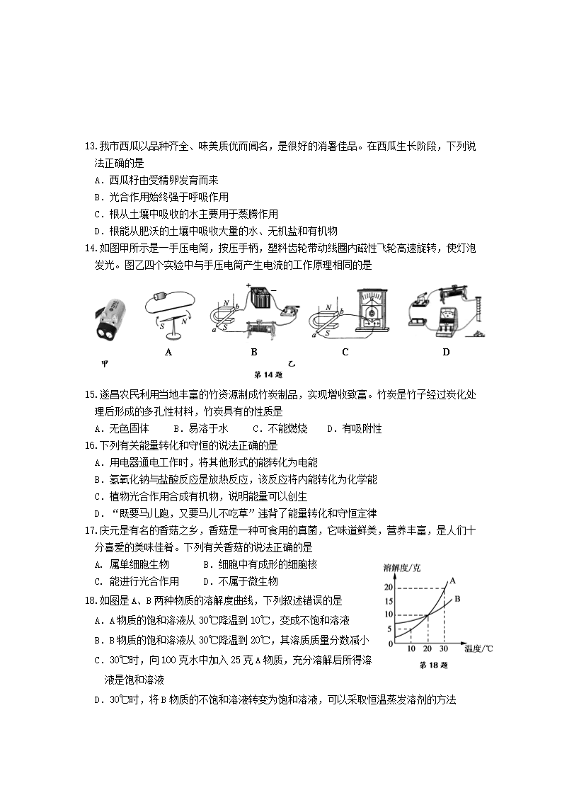 【文档名称】 2013浙江省丽水市中考科学真题及答案(Word版).doc
