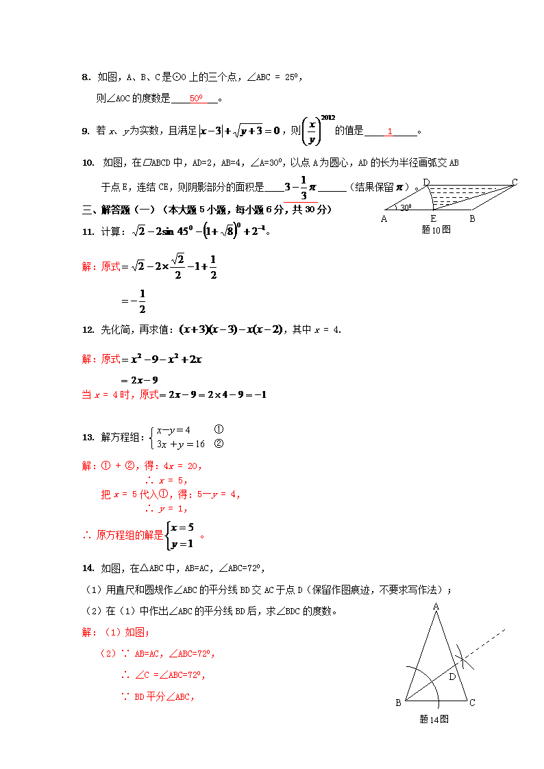 【文档名称】 2012年广东省惠州市中考数学试题及答案(Word版).doc