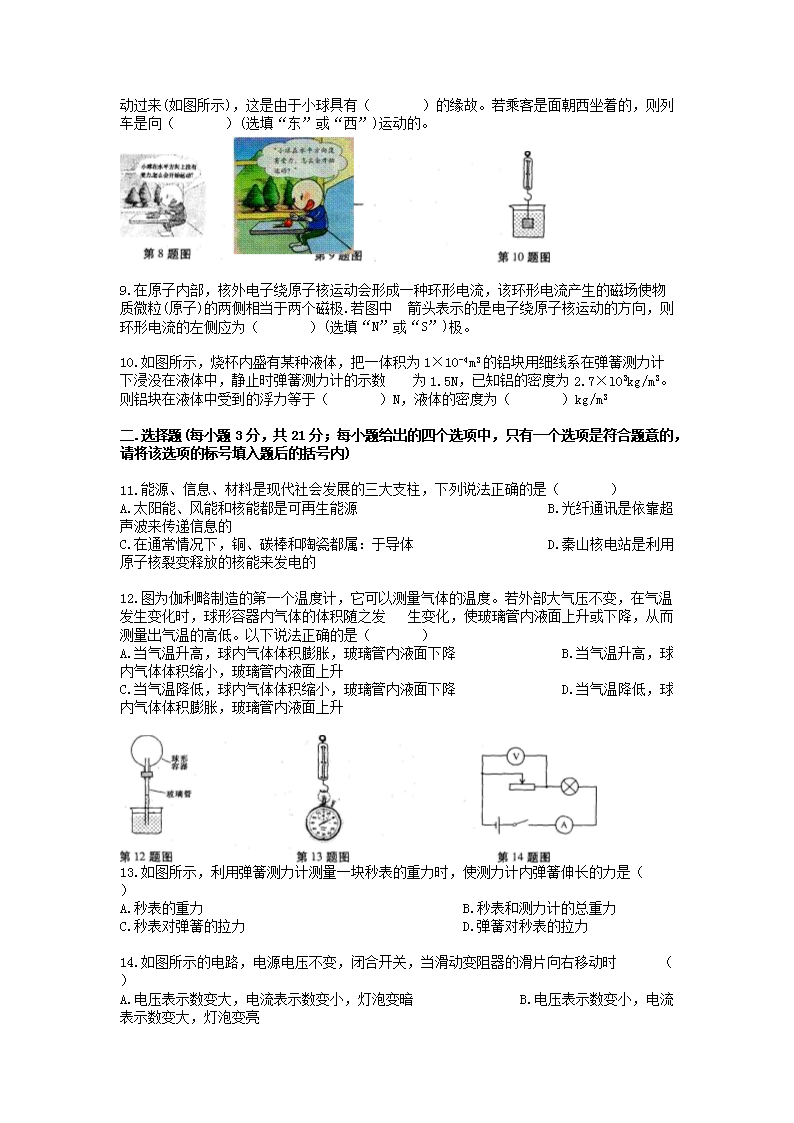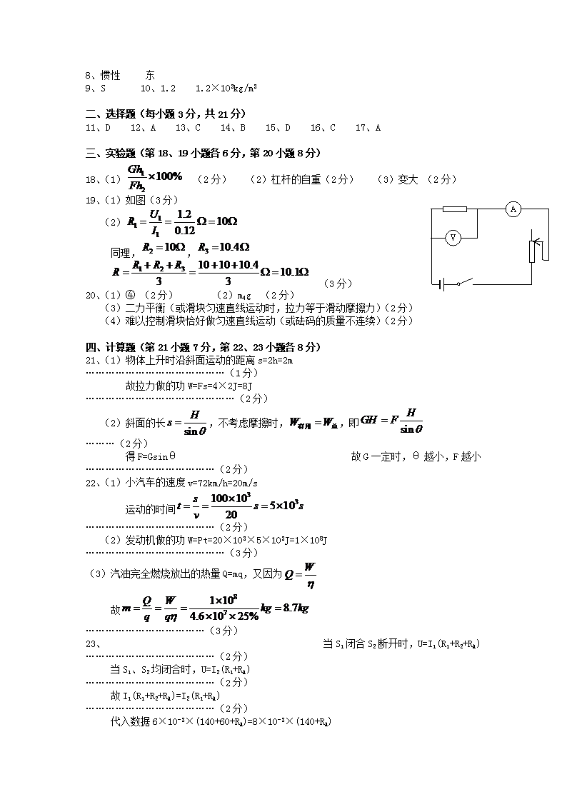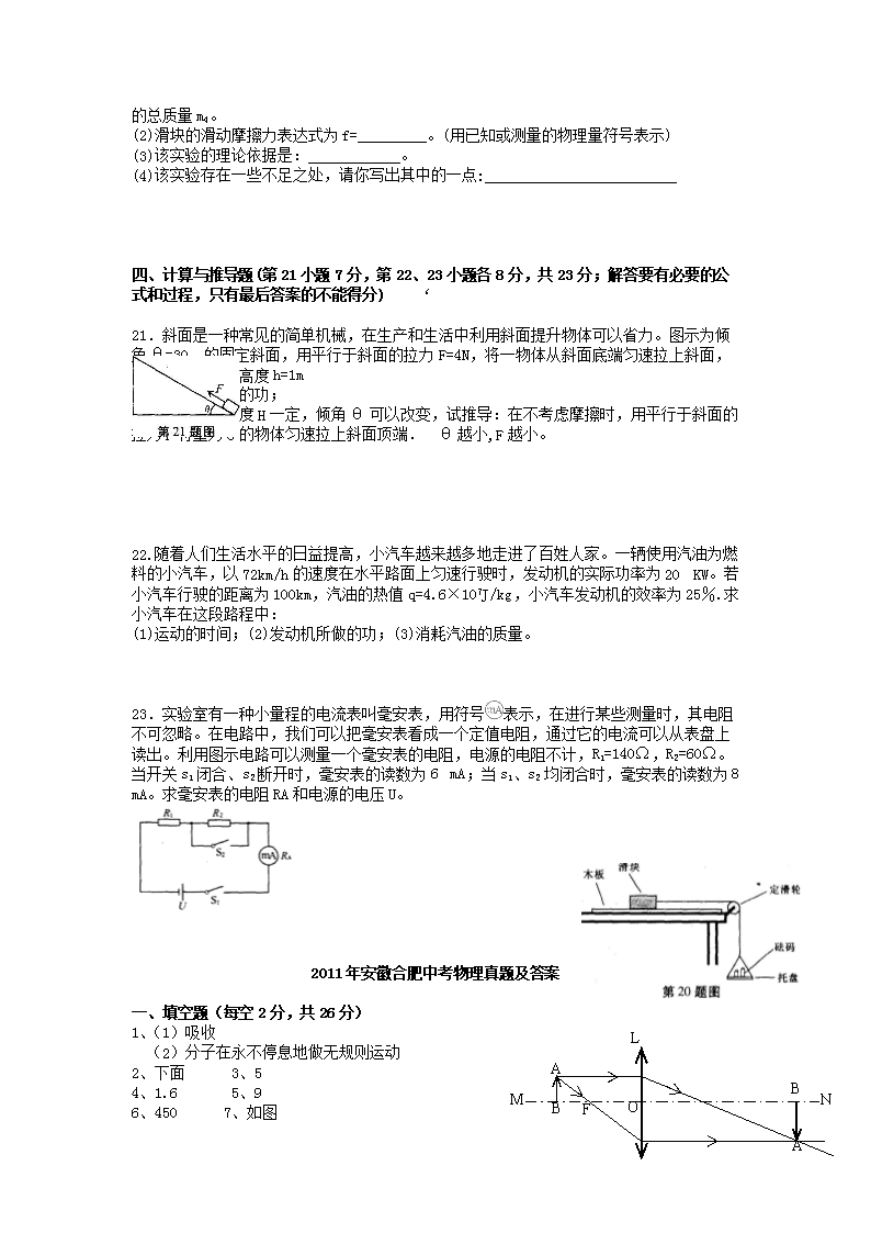 【文档名称】 2011年安徽合肥中考物理真题及答案(Word版).doc